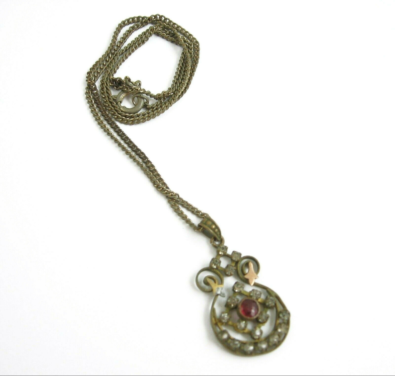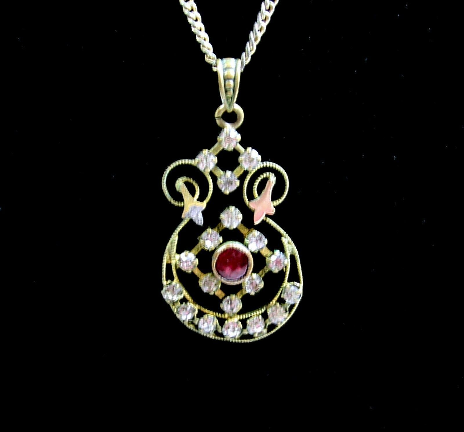 Rhinestones Pink Red Stone PENDANT Goldtone NECKLACE Vintage 18" Length