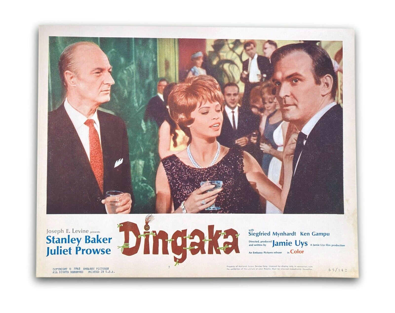 LOOKING FOR THE NEXT BIG THING TO ADD TO YOUR MEMORABILIA COLLECTION? WELL THIS IS IT! ldquo;DINGAKA rdquo; STARRING: STANLEY BAKER amp; JULIET PROWSE Copyrighted/Dated: 1964 11" X 14" in Size NOT A Bootleg or Reproduction - Guaranteed ORIGINAL THEATRICAL LOBBY CARD USED IN A MOVIE THEATRE AROUND TIME OF RELEASE OF THE MOVIE. CONDITION: Poster is in -Vintage Condition- and of investment quality. This ORIGINAL lobby card was used at a movie theatre. It may or may not have staple marks at corners, wrinkling, slight tears around edges, rounded corners, etc. from being originally displayed at a movie theatre or overtime natural wear. Colors and Detail are outstanding for this day amp; age, photos may not completely pick up high quality of coloring and inks until you see in hand. PLEASE MAKE YOUR PERSONAL ASSESSMENT OF THE CONDITION OF THIS POSTER FROM THE PHOTOS PROVIDED IN THE LISTING. The above condition issues are not exact for this poster so please take a look at the photos to determine the condition. MAKE SURE YOU CHECK OUT OUR OTHER ORIGNAL MOVIE POSTERS amp; LOBBY CARDS FROM THE 1930s AND ON IN OUR ONLINE SHOP! CHANCES ARE WE MAY HAVE MORE THAN ONE LOBBY CARD FROM THE SAME MOVIE OR EVEN A COMPLETE SET AVAILABLE. WE HAVE MANY TITLE CARDS AVAILABLE AS WELL AS KEY SCENES FROM ICONIC MOVIES ON HAND!! CHECK THEM OUT. Thanks for looking. We ship our items very protected and secure to make sure the item(s) make it to you safely!!