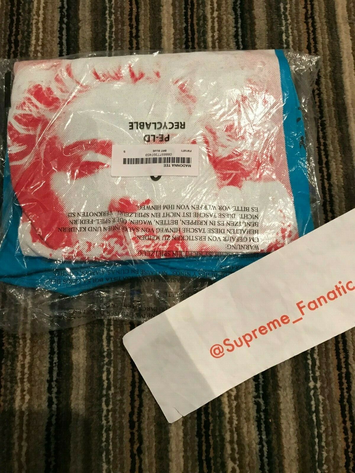 DS Supreme Madonna Tee Bright Blue Size Small in plastic 100% Authentic