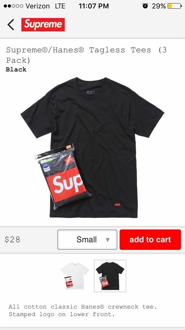 Supreme Hanes Tagless Tee Shirts 3 pack size and similar items