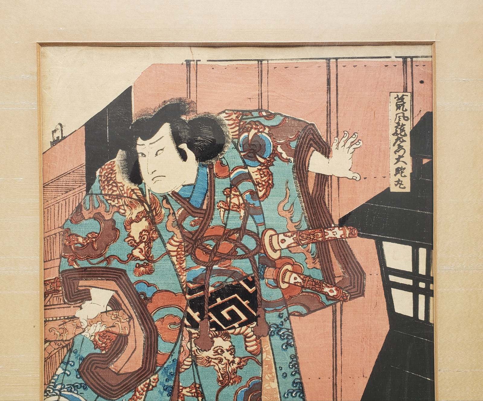 UP FOR YOUR CONSIDERATION IS THIS FRAMED MATTED VINTAGE ART PRINT BY TOYOHARA KUNICHIKA.