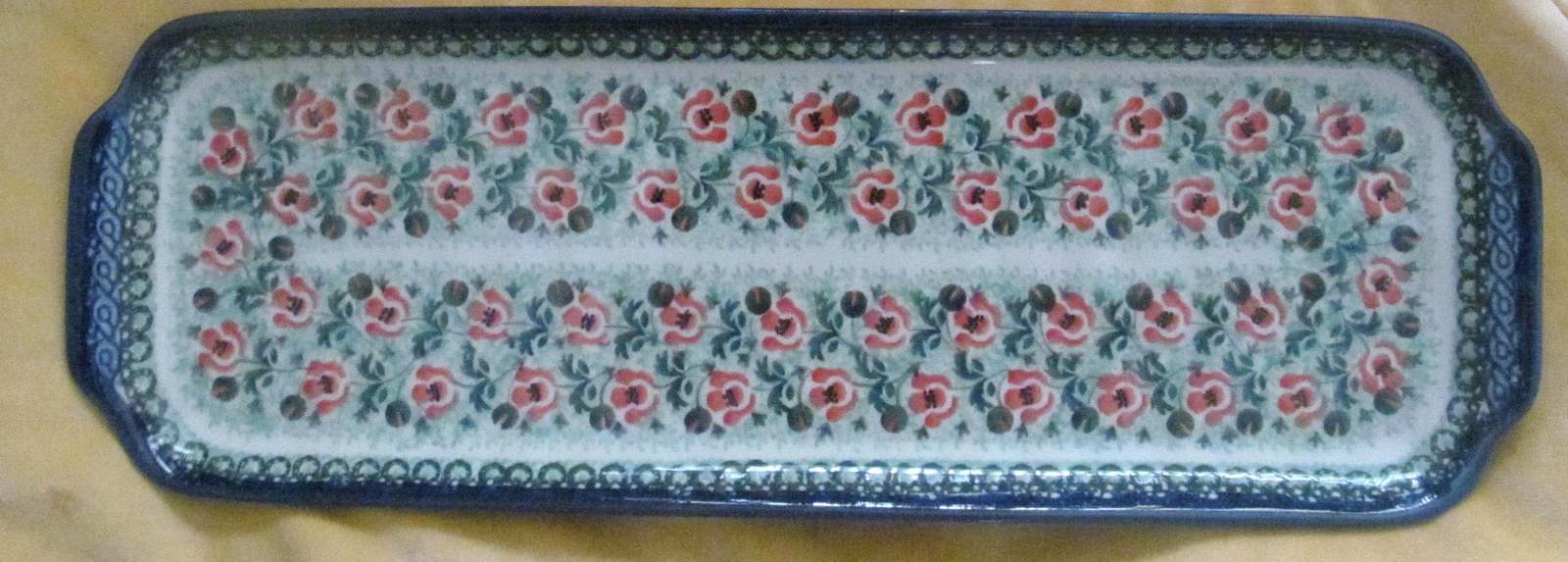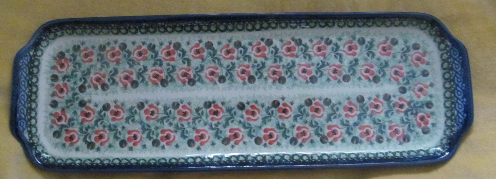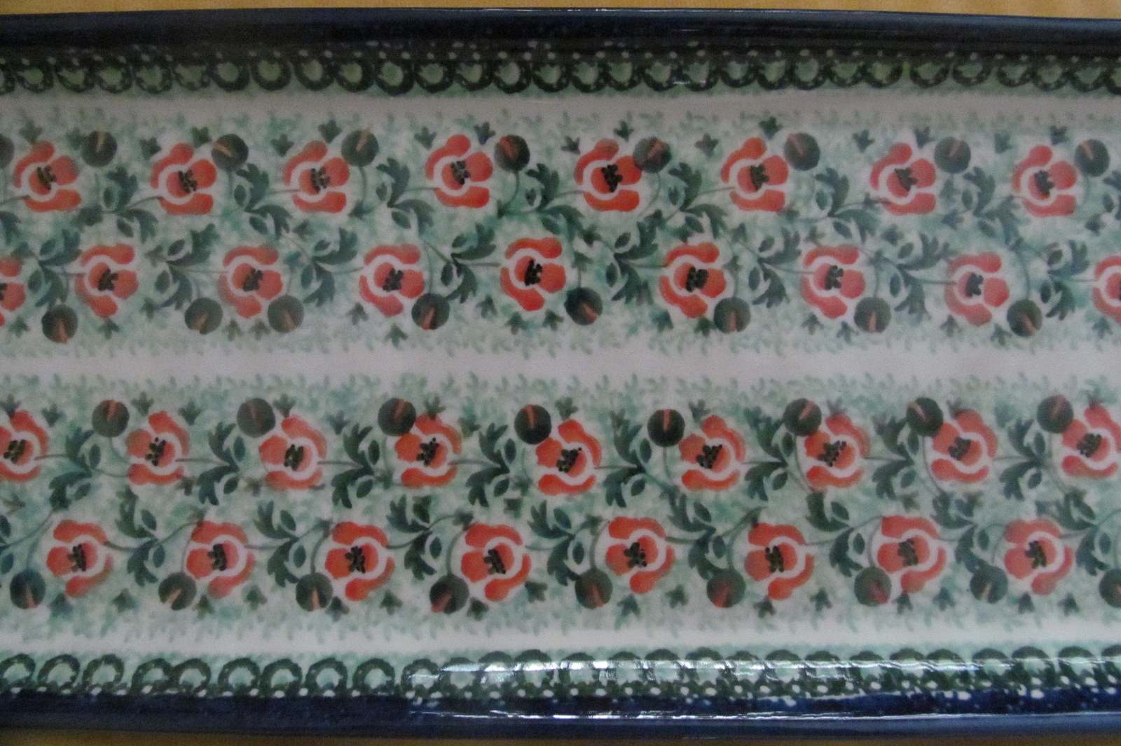 Vintage Unikat Boleslawiec Blue Design with Country Flowers Ceramic Large Pottery Tray, Polish, Hand