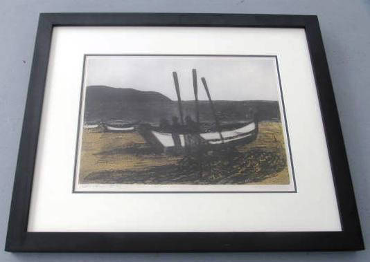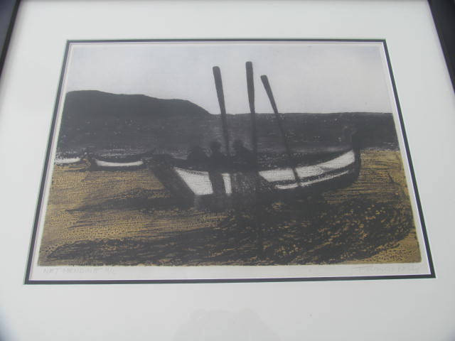 Hand Signed Francis Kelly "Net Bending" H/C Framed Aquatint Etching Print Art