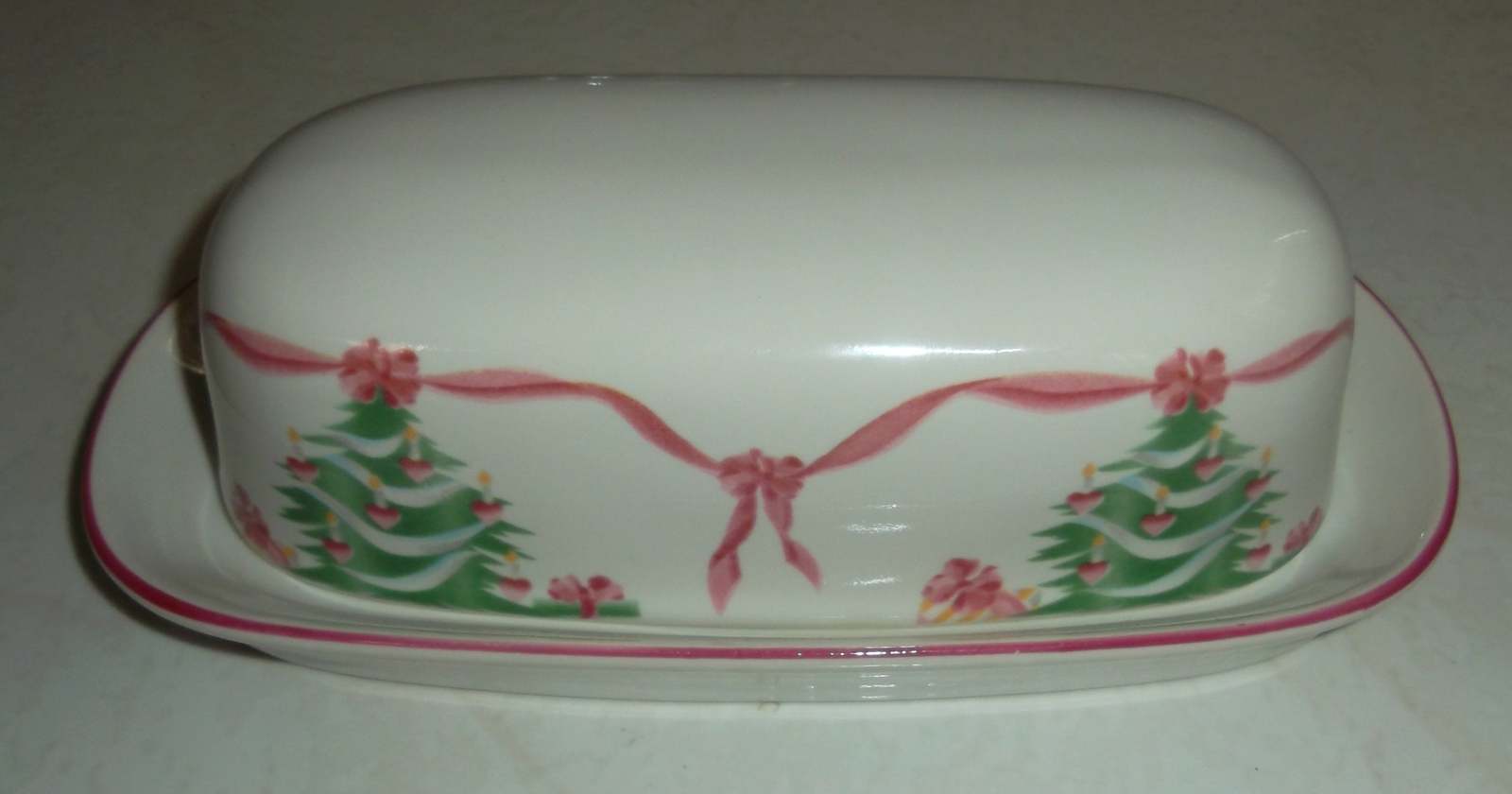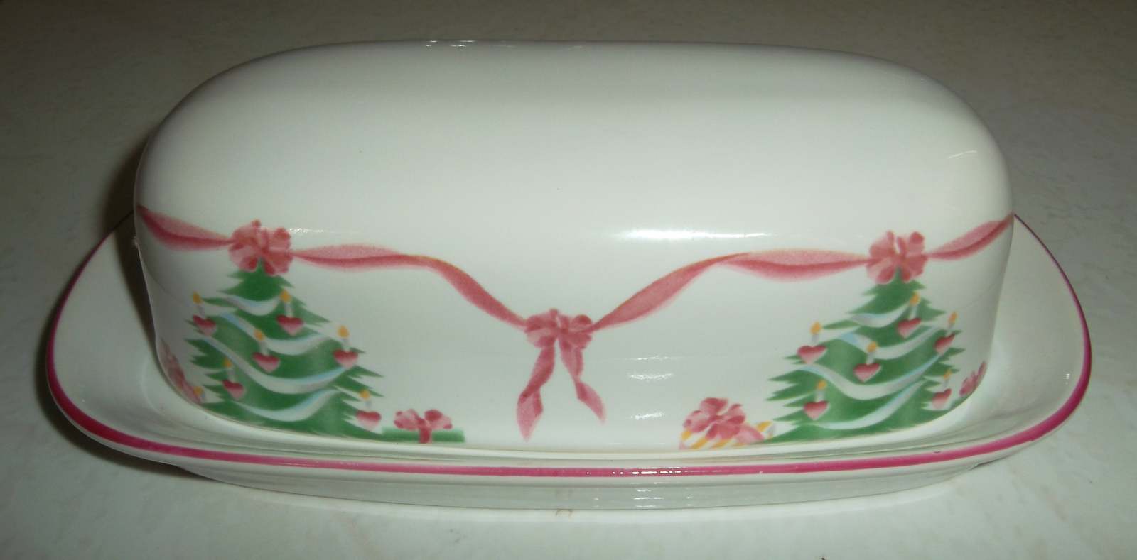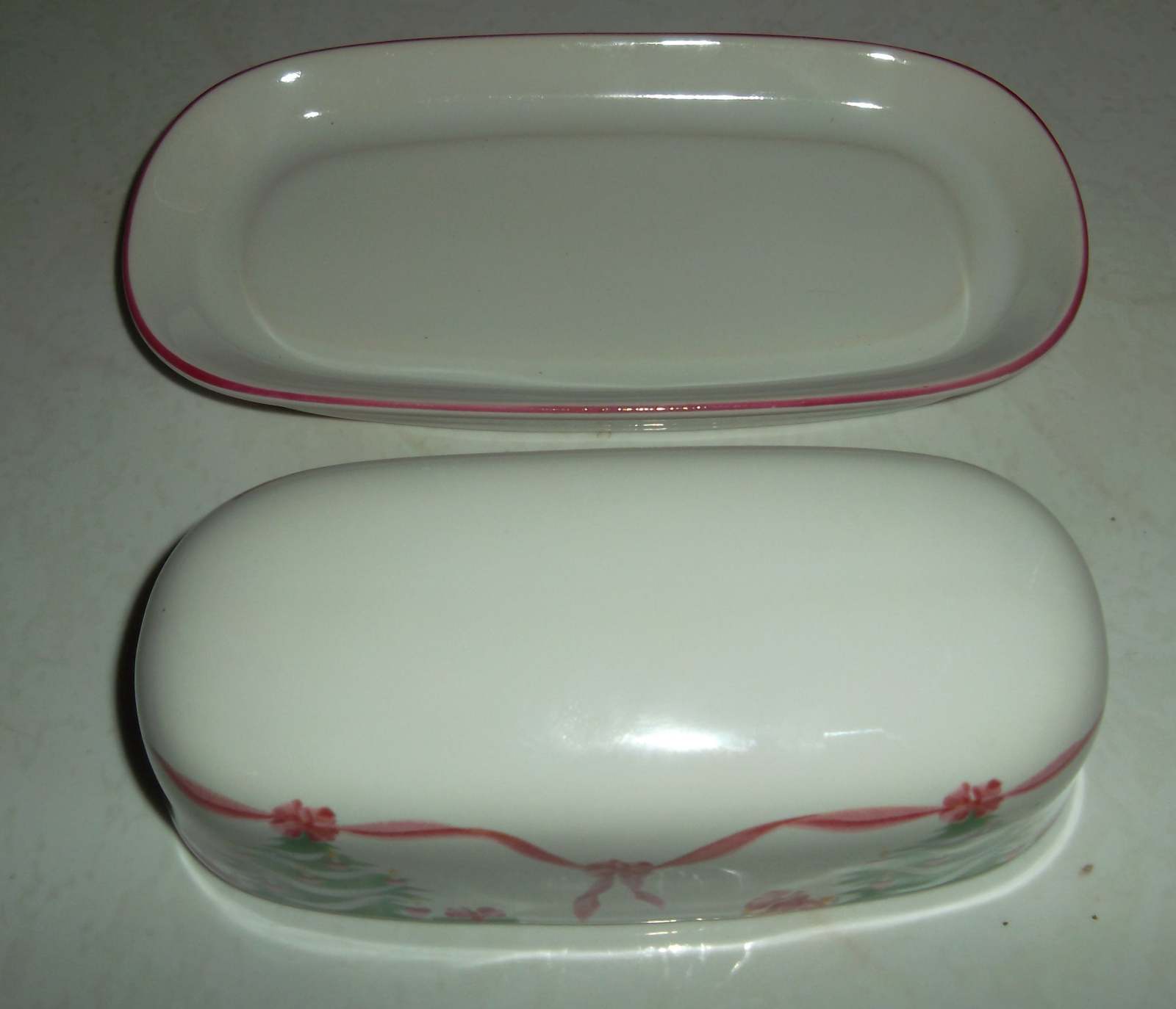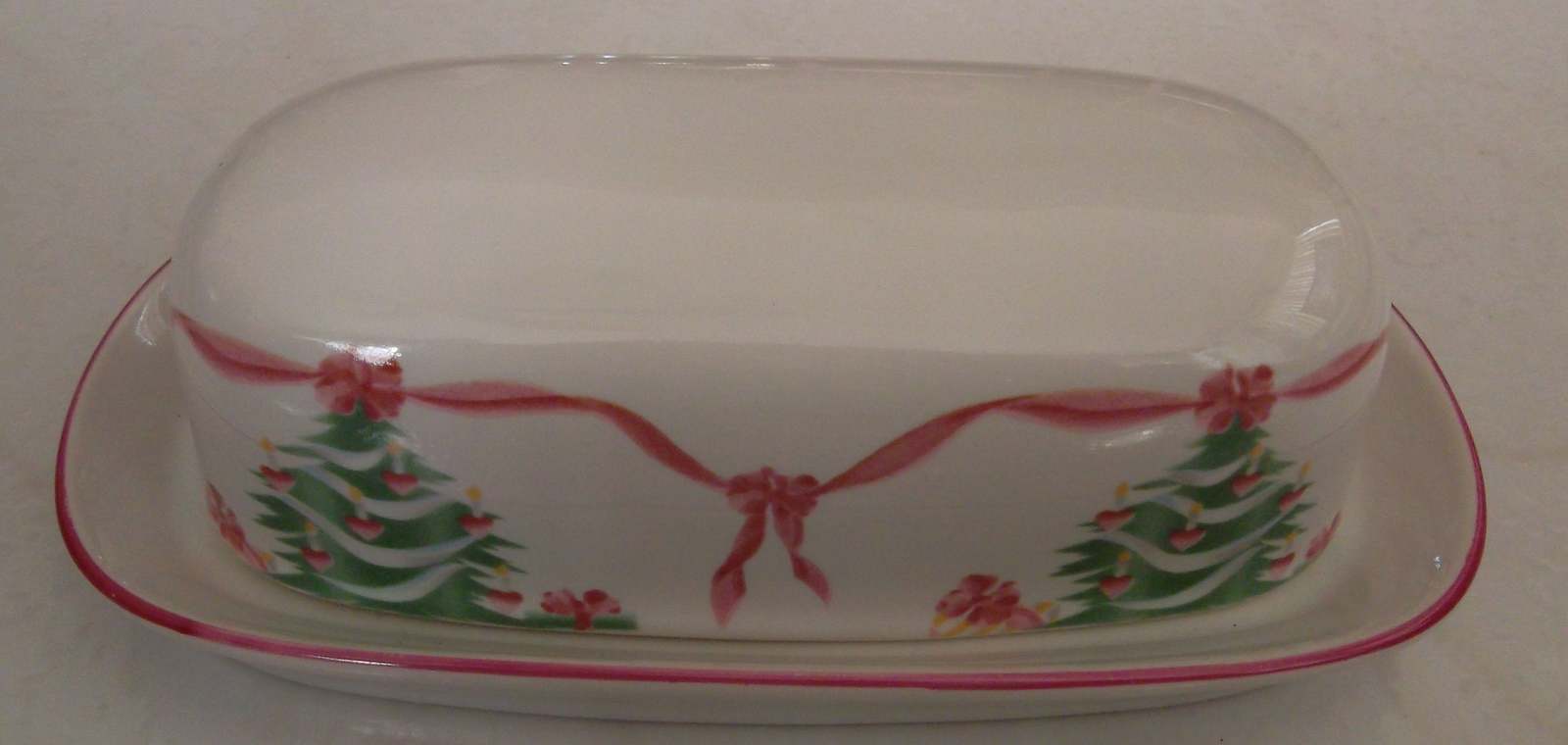HERE FOR YOUR CONSIDERATION IS A Christmas style hand decorated butter dish