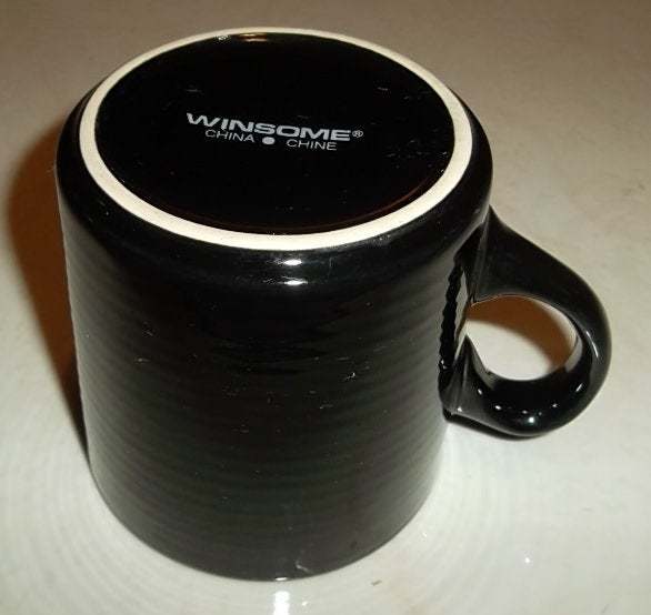 Winsome (1) Gloss Black Color China Stoneware Large Collectible Mug Looks Like b