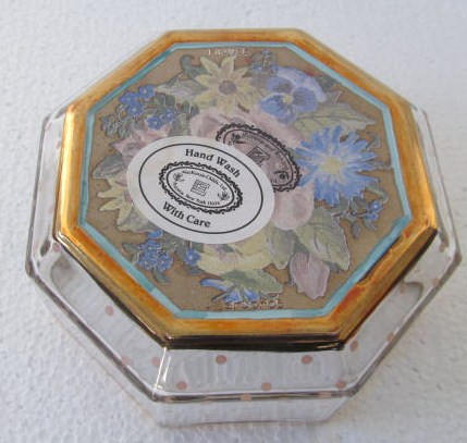 Mackenzie -Childs Ltd Octagonal Glass Shape Arcoroc Bowl Handpainted Floral Desi