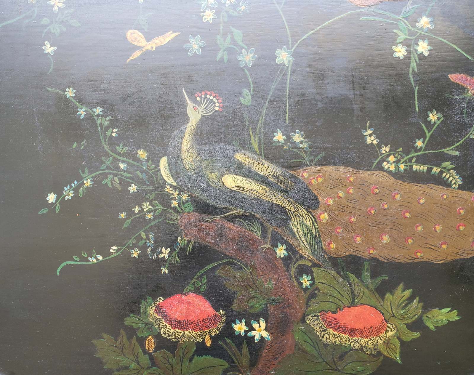 SIGNED 1954 Vintage Mabel Cordwell Handpainted Black Enamel Iron Metal Peacock D