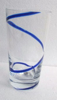 Pier 1 Highball Mouthblown Glass Tumbler Swirlline Cobalt Blue Design