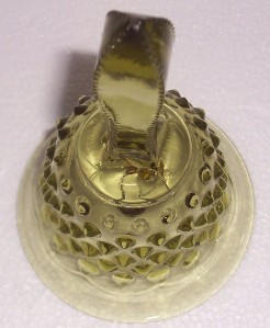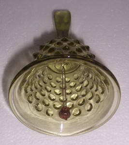This Fenton hobnail bell is one from the archives made of handblown glass. It is very different the bell clapper is made