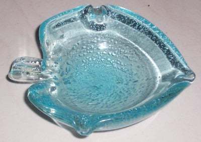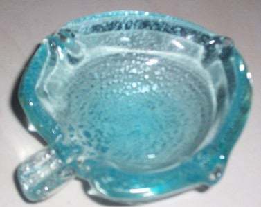 Vintage Murano Glass Art Specked Blue/Gold Dust design Handblown Glass Ashtray D