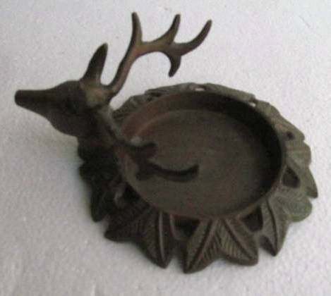 Stunning brass stag candle holder in good vintage condition with patina and verdigris.
