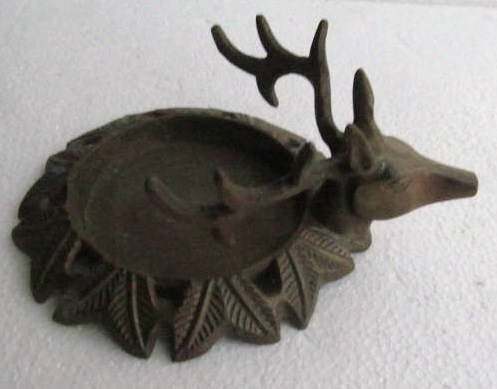 Vintage Brass- Mid Century Brass Stag Pillar Candle holder-Vintage Collectible Brass Reindeer Trinket Dish