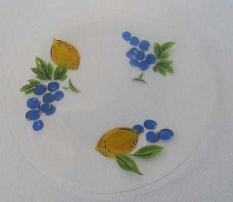Handpainted Glass Art Plate "Lemons & Grapes" Collectible Display Decorative Pla
