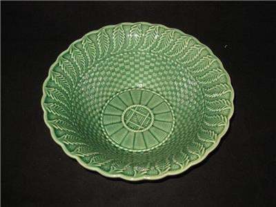 Bordallo Pinheiro 10 1/2" Collectible Extra Large Serving Bowl Basketweave Green