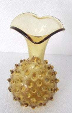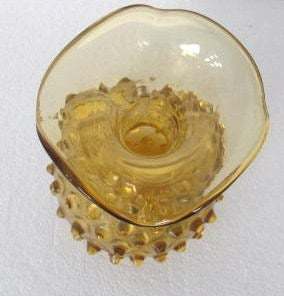 Description: Amber color, with hobnails design, vintage collectible glass.