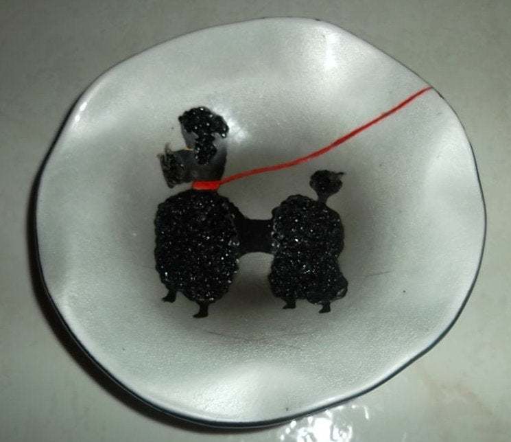 Rare Vintage Poodle by Don of Evans Trinket Enamel Dish, Retro, Mid Century