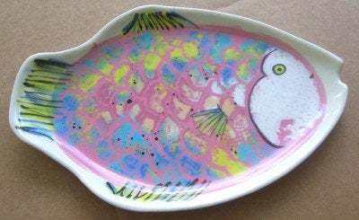 Ceramic Multi-Colored Handpainted Fish Display Platter.