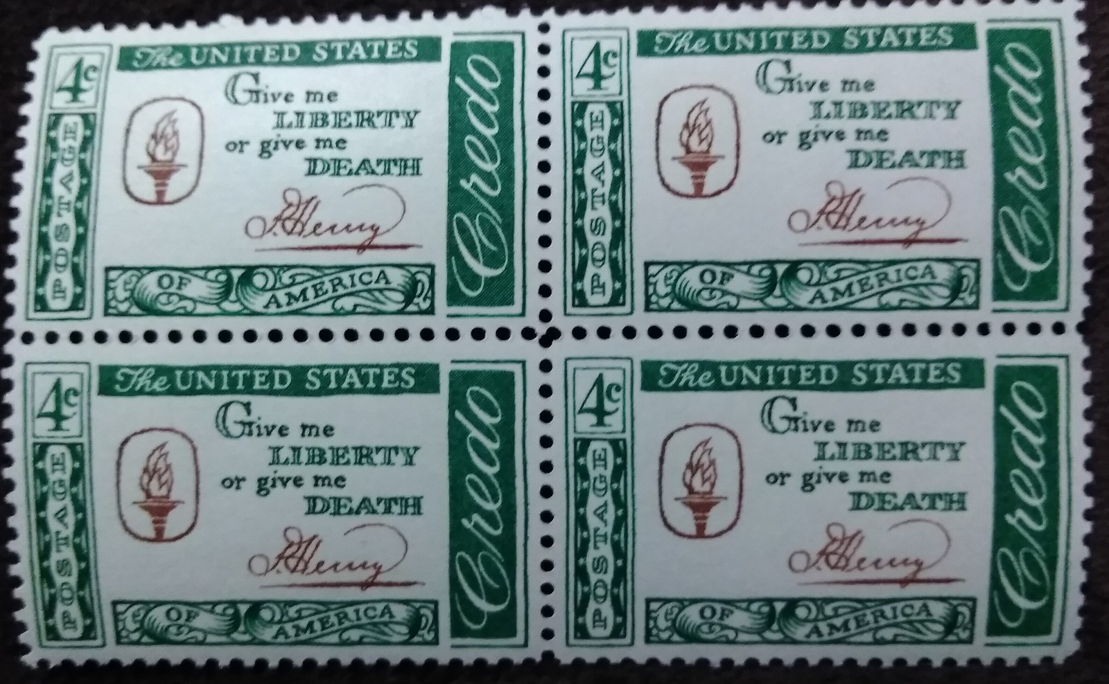 Four MNH 1961 U.S. Postage Stamps American Credo: Patrick Henry