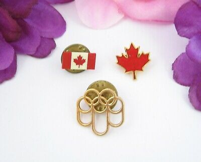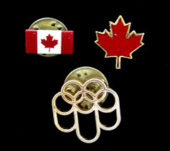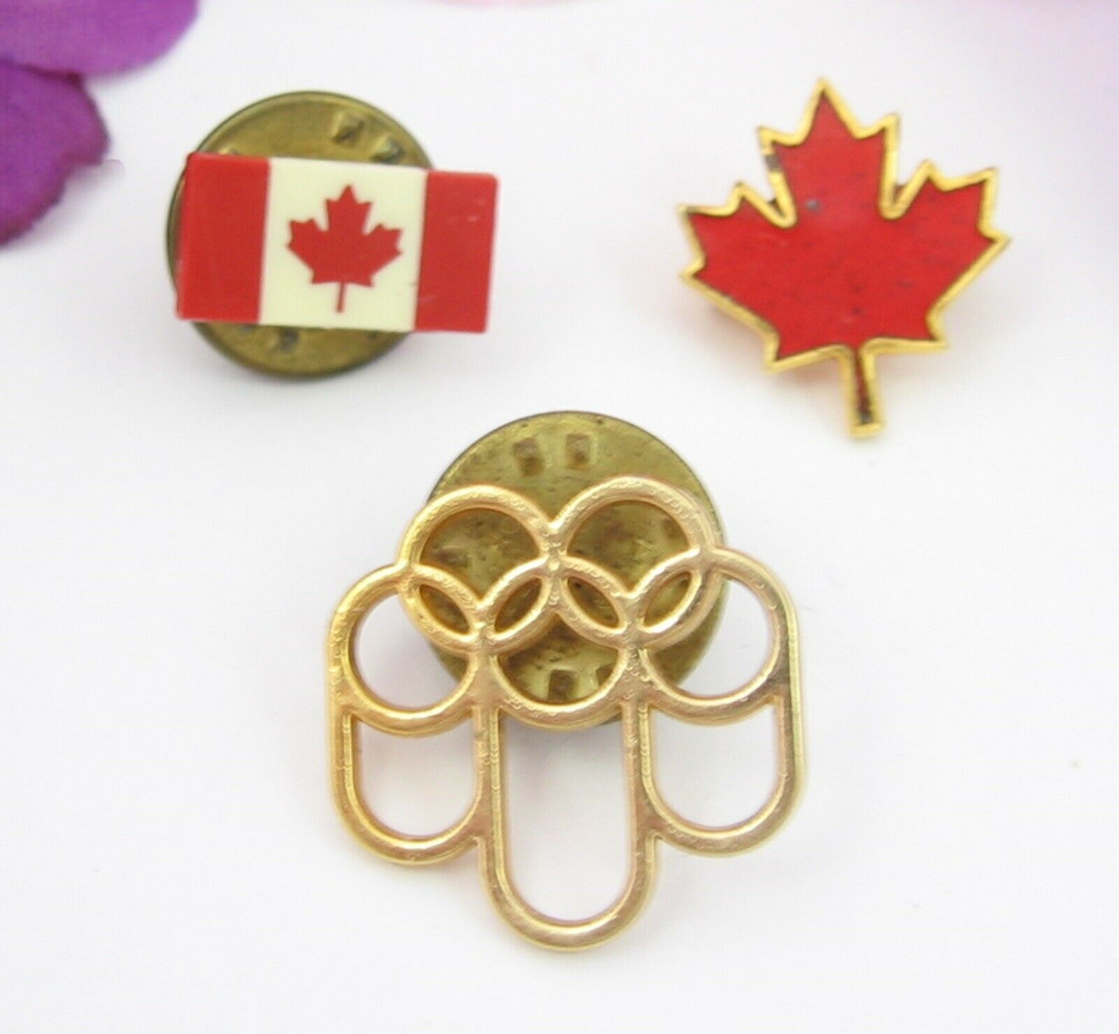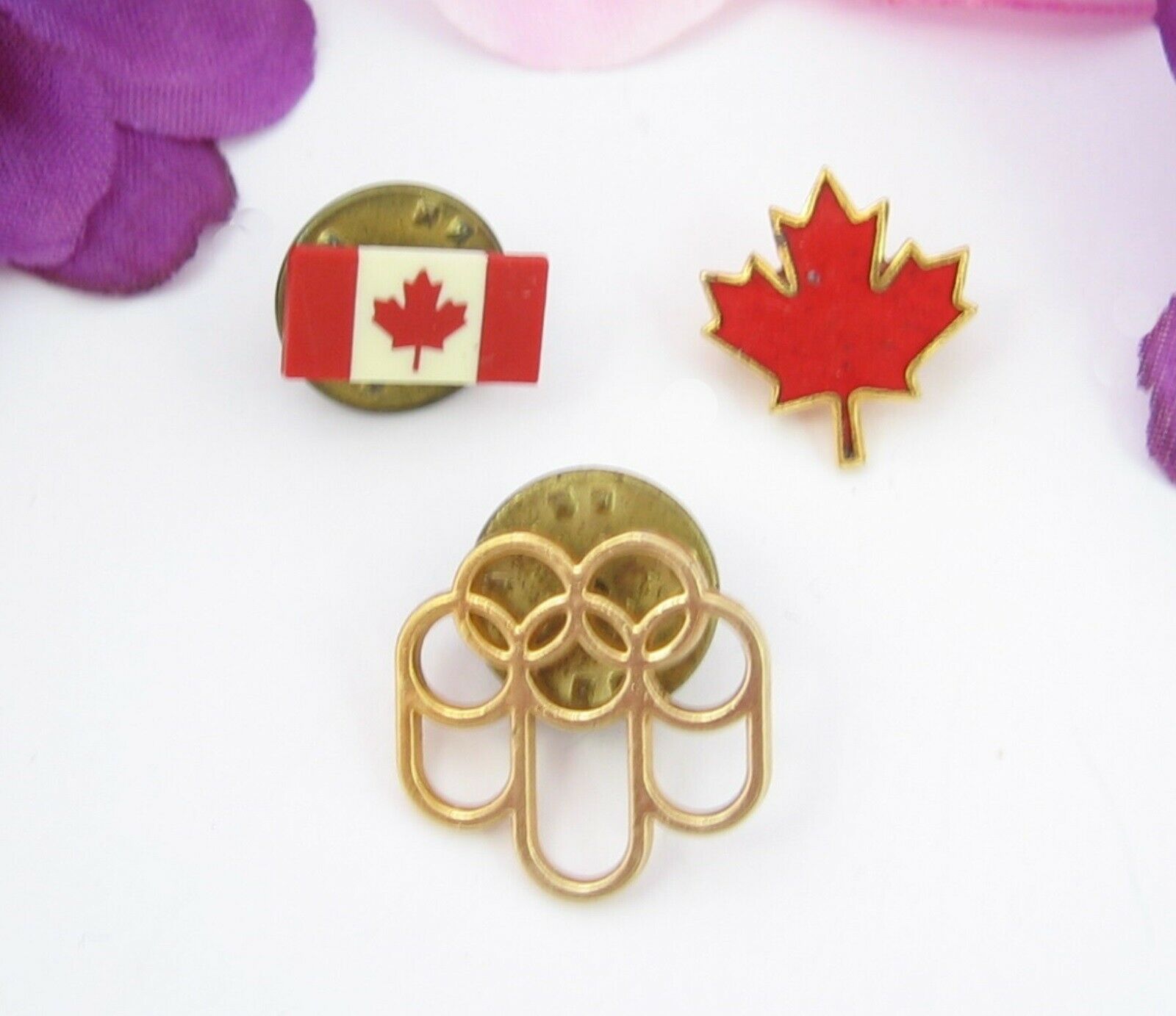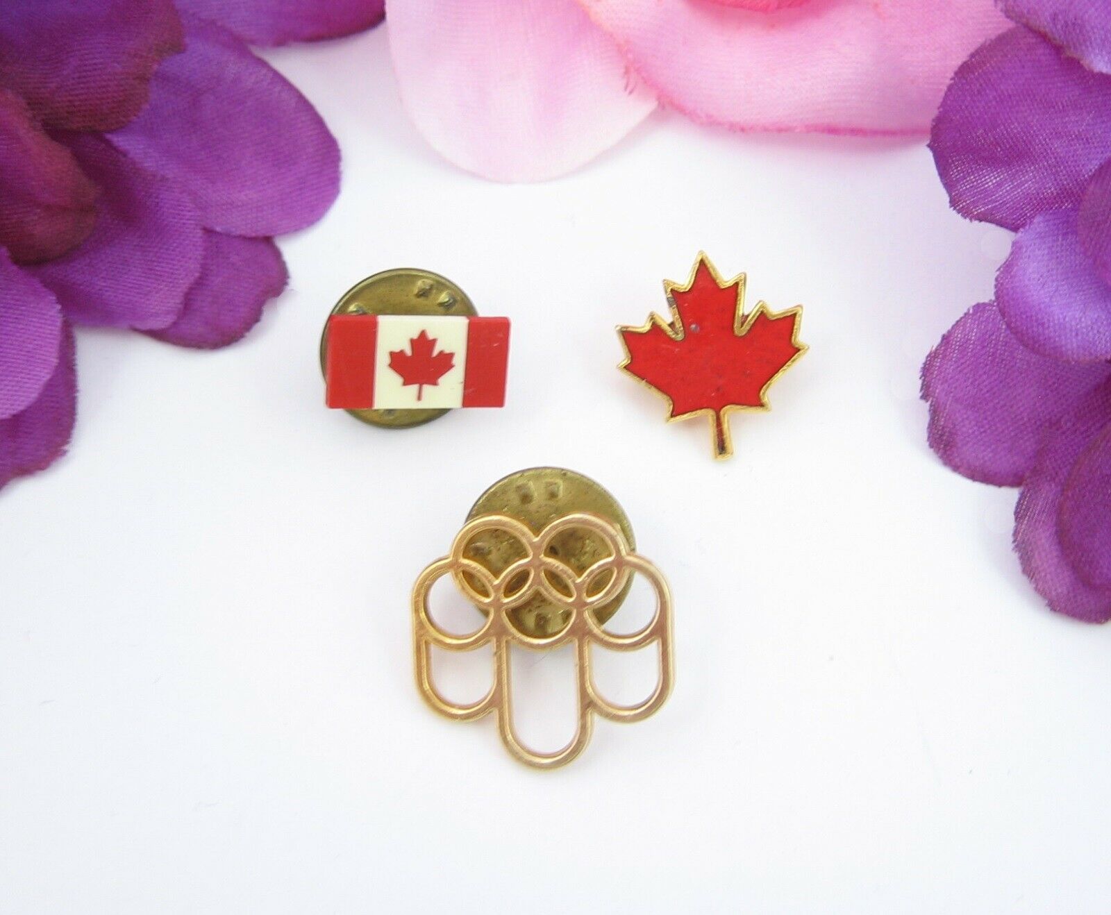 3 Pins CANADA FLAG Red Enamel Maple Leaf 1976 Montreal Olympics Vintage 1972