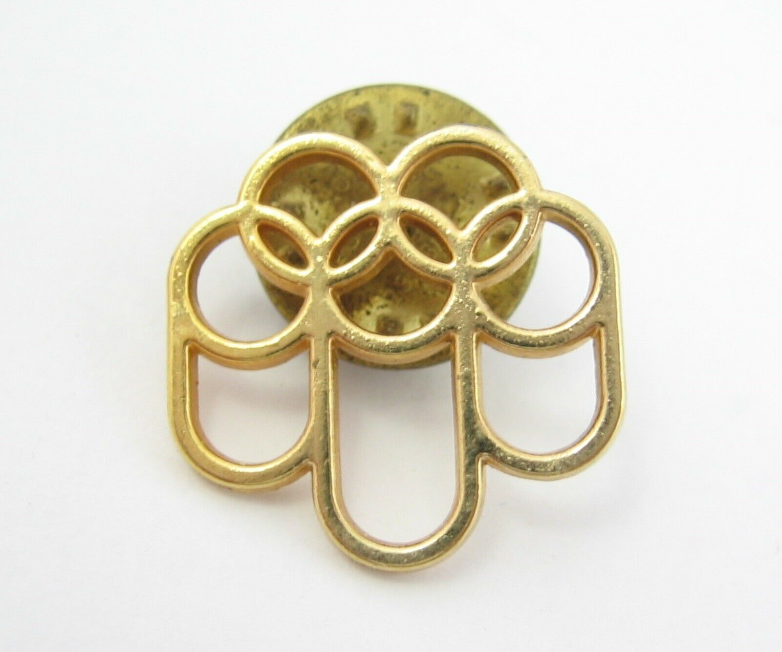 3. 1976 MONTREAL OLYMPIC PIN -- Goldtone metal and marked on the back "1972 , COJO73 TM", measures 5/8"