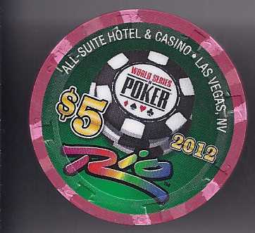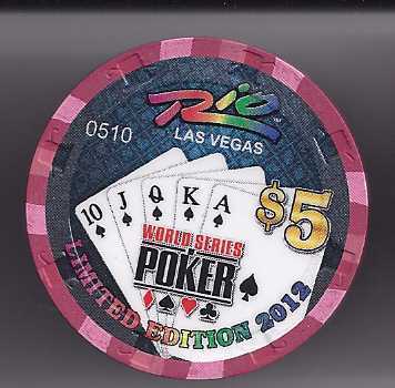 This is a $5 Casino Chip featuring a Straight from the 2012 WORLD SERIES OF POKER at the RIO LAS VEGAS. A Limited Edition Chip! Different numbers available.