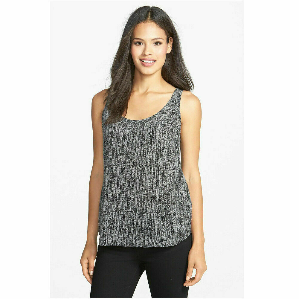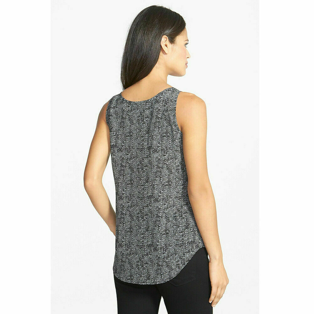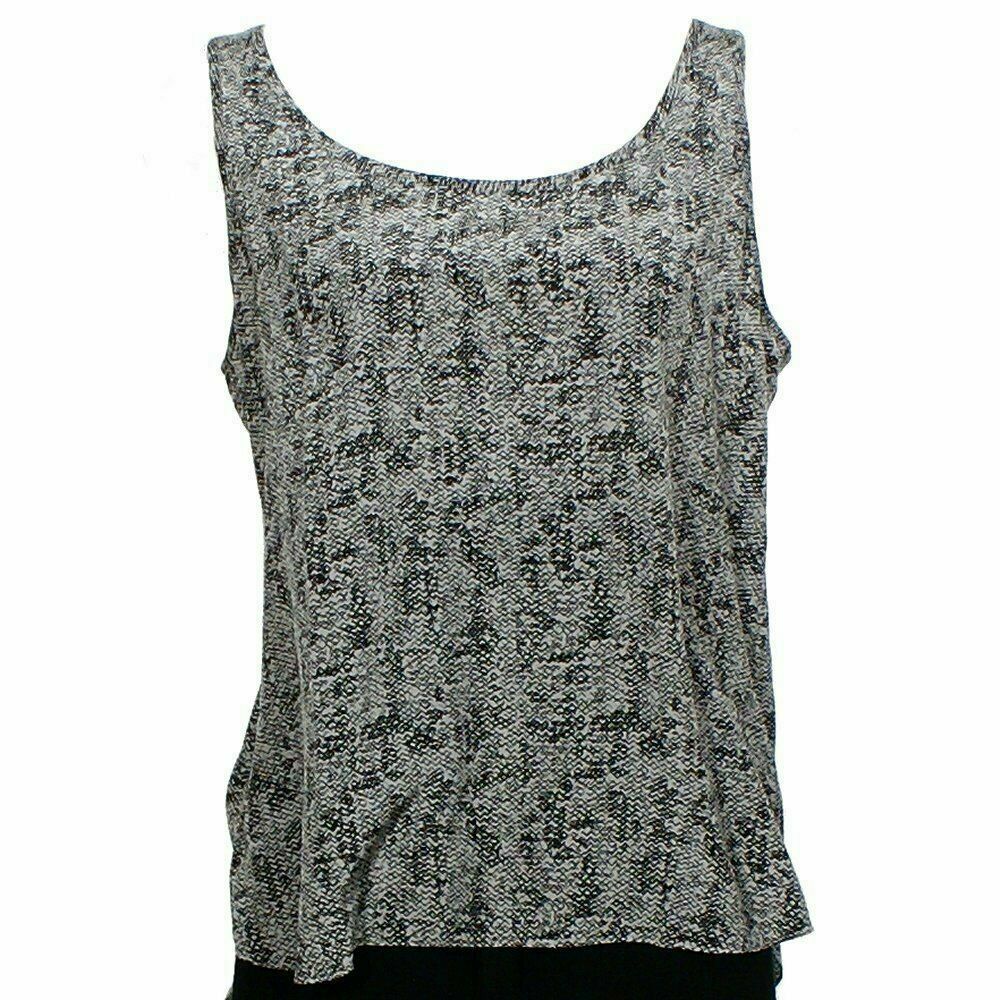 EILEEN FISHER Pewter Gray Black Roadster Print Silk Crepe Chine Tank Top M