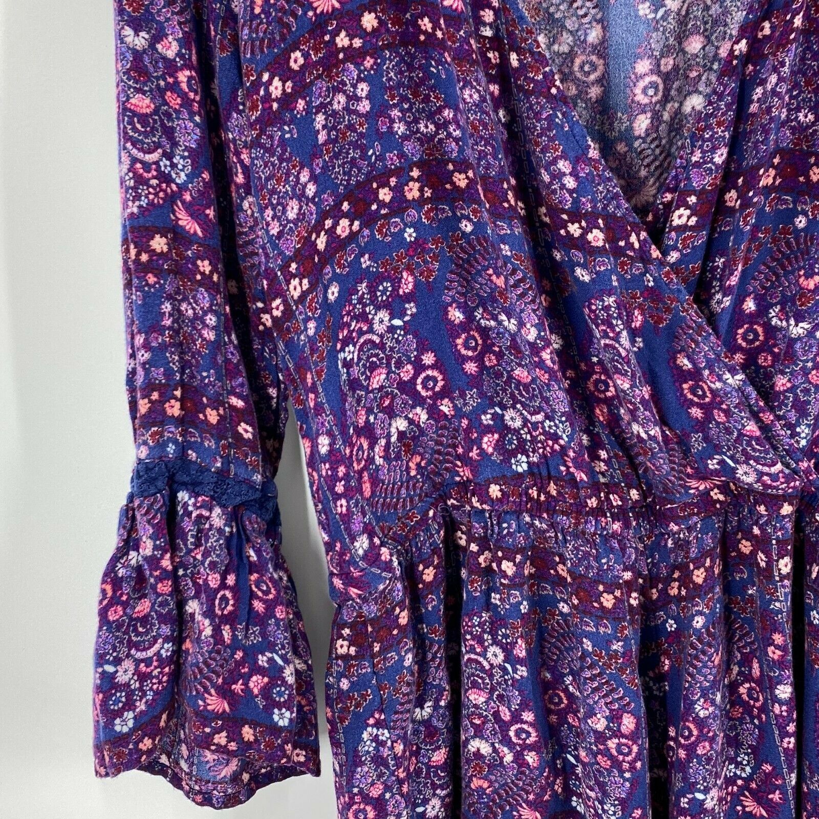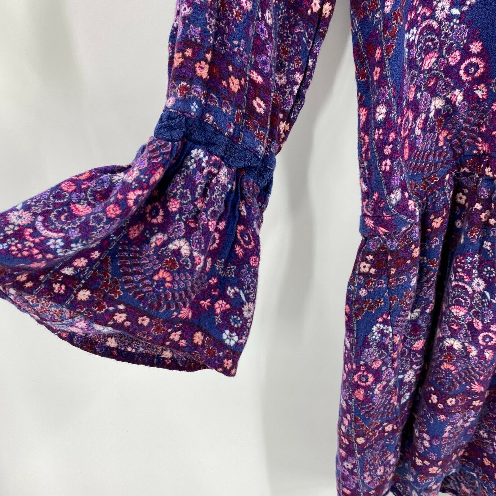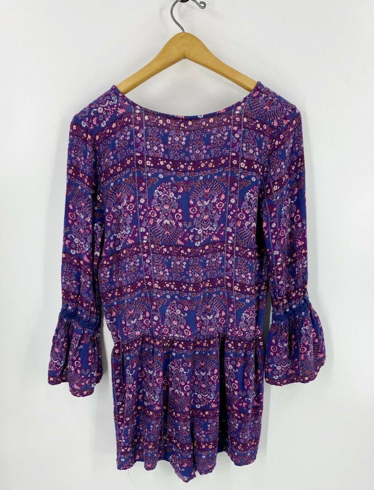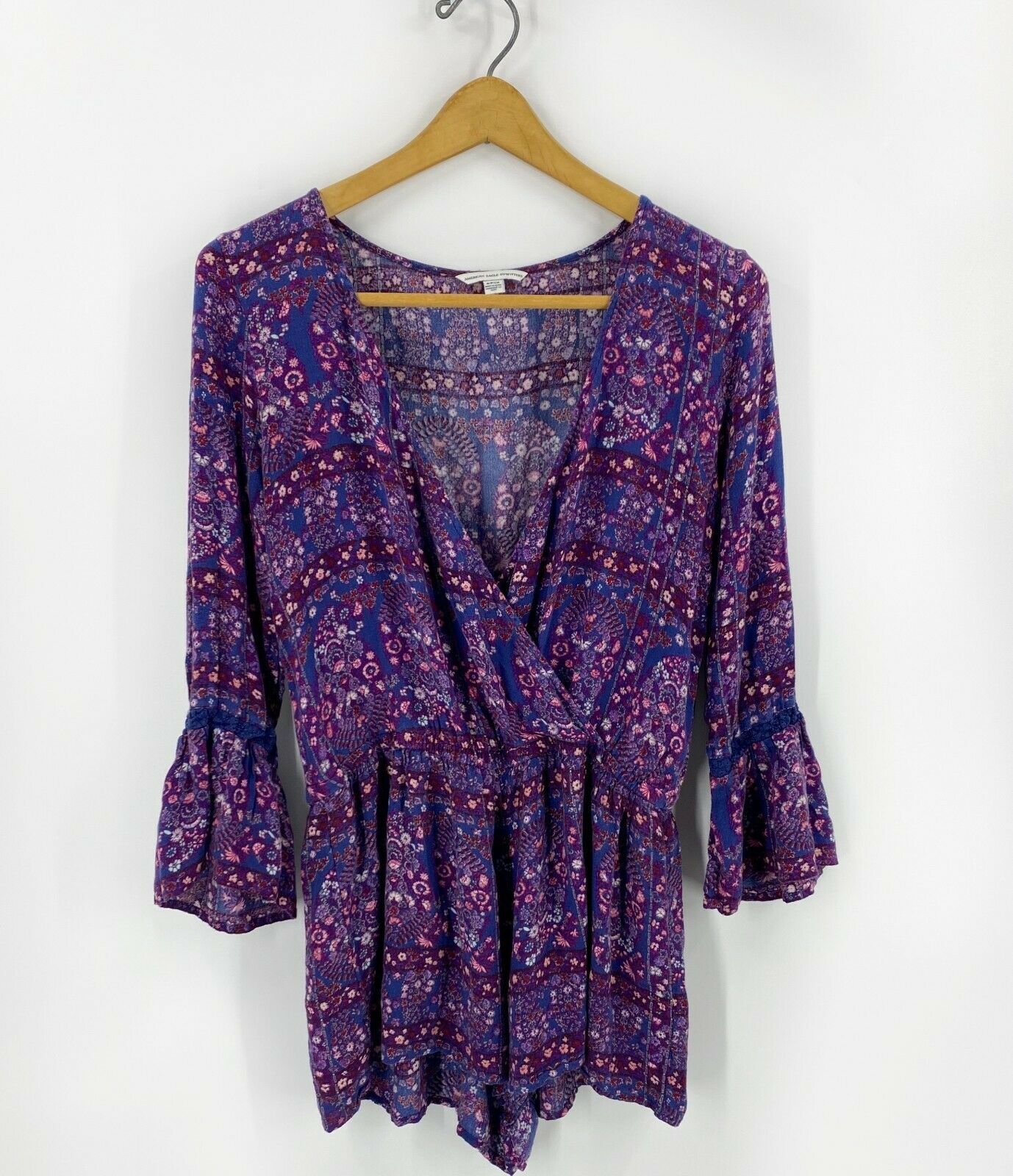 American Eagle Romper Size Small Blue Pink Floral Bell Sleeve Boho One Piece