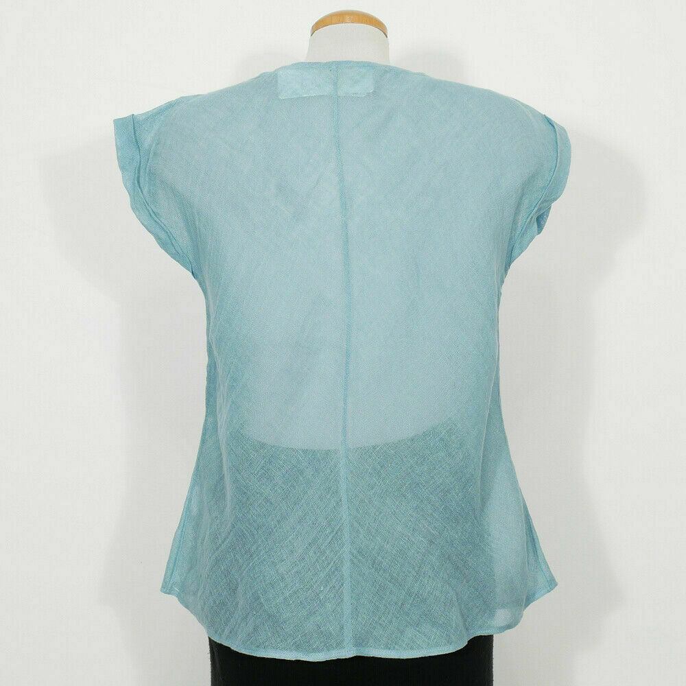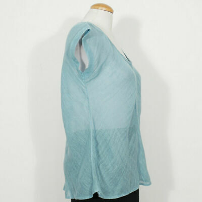 EILEEN FISHER Bayberry Blue Linen Gauze Scoop Neck Long Top S