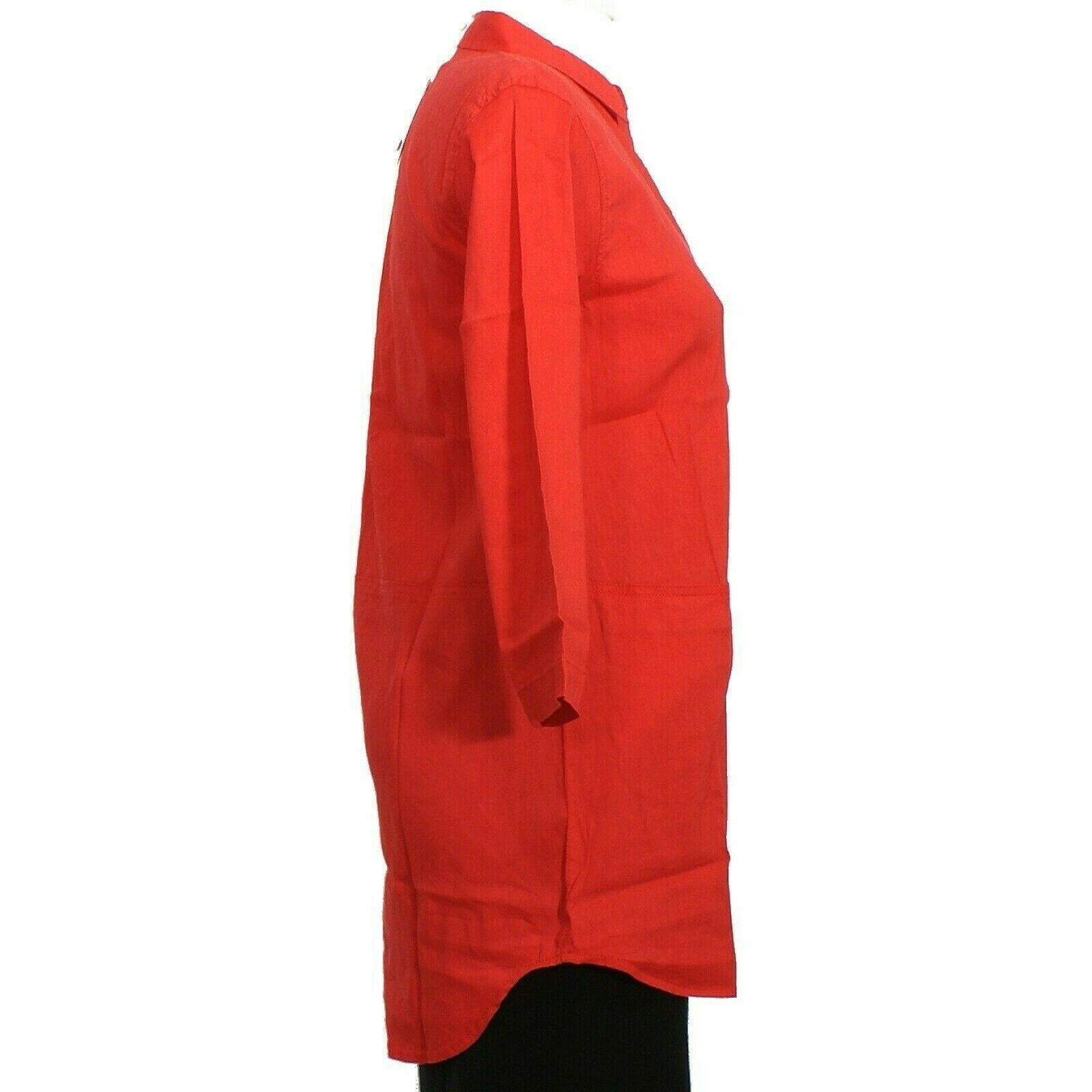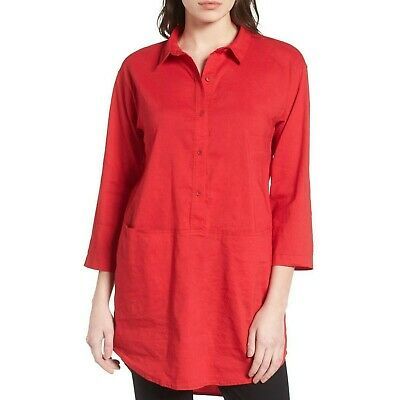 EILEEN FISHER Cardinal Red Linen Viscose Stretch Pocketed Tunic Top PP