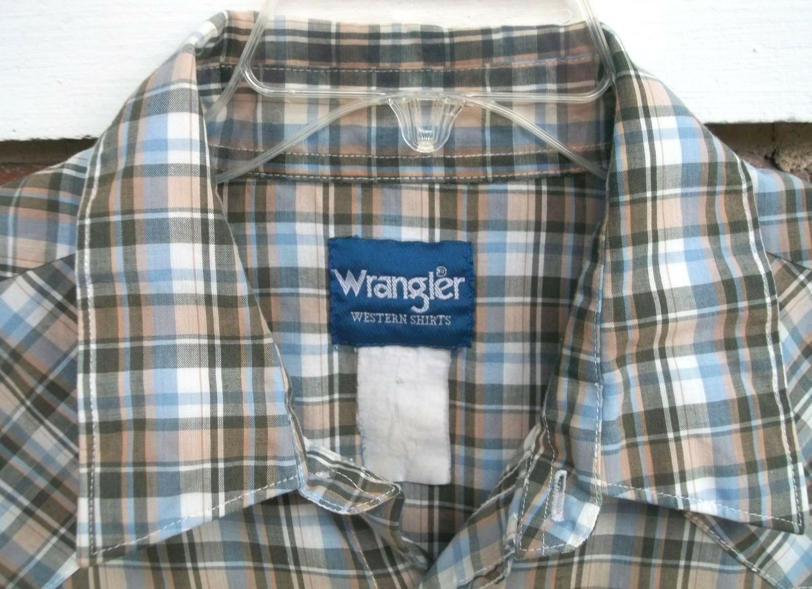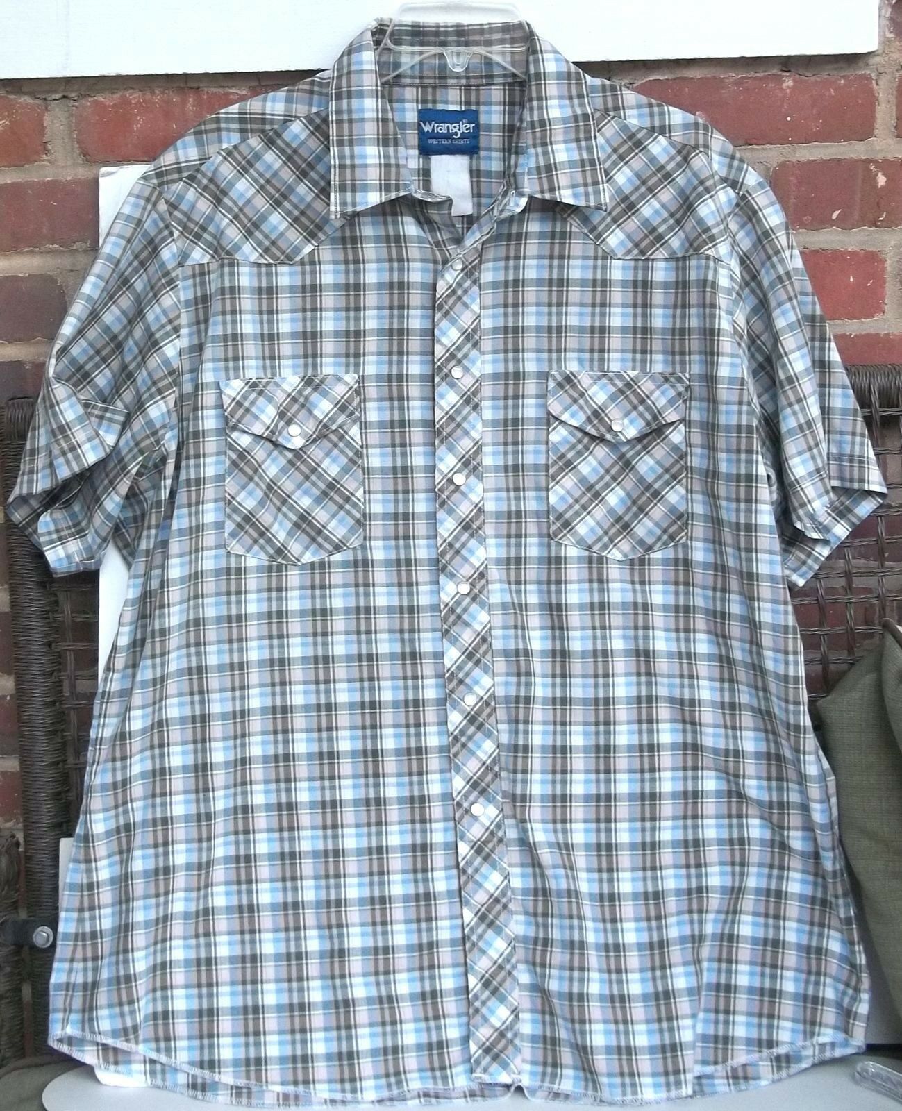 Wrangler Pearl Snap Western Shirt 2 Flap Pockets Blue Brown Plaid