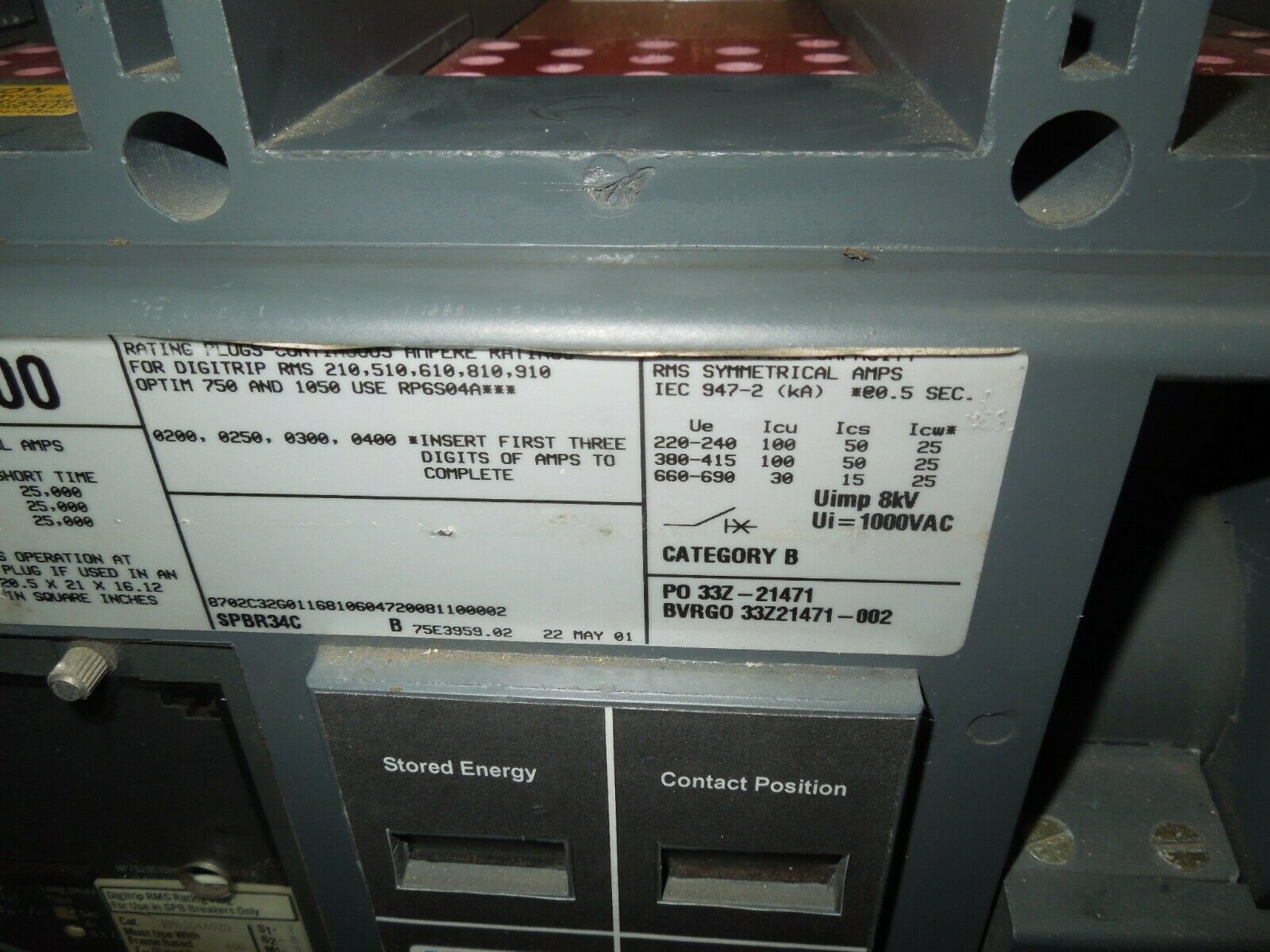 Cutler-Hammer SPB100 SPBR34R 400A Frame 200A Rated Pow-R Breaker RMS510 LSIG