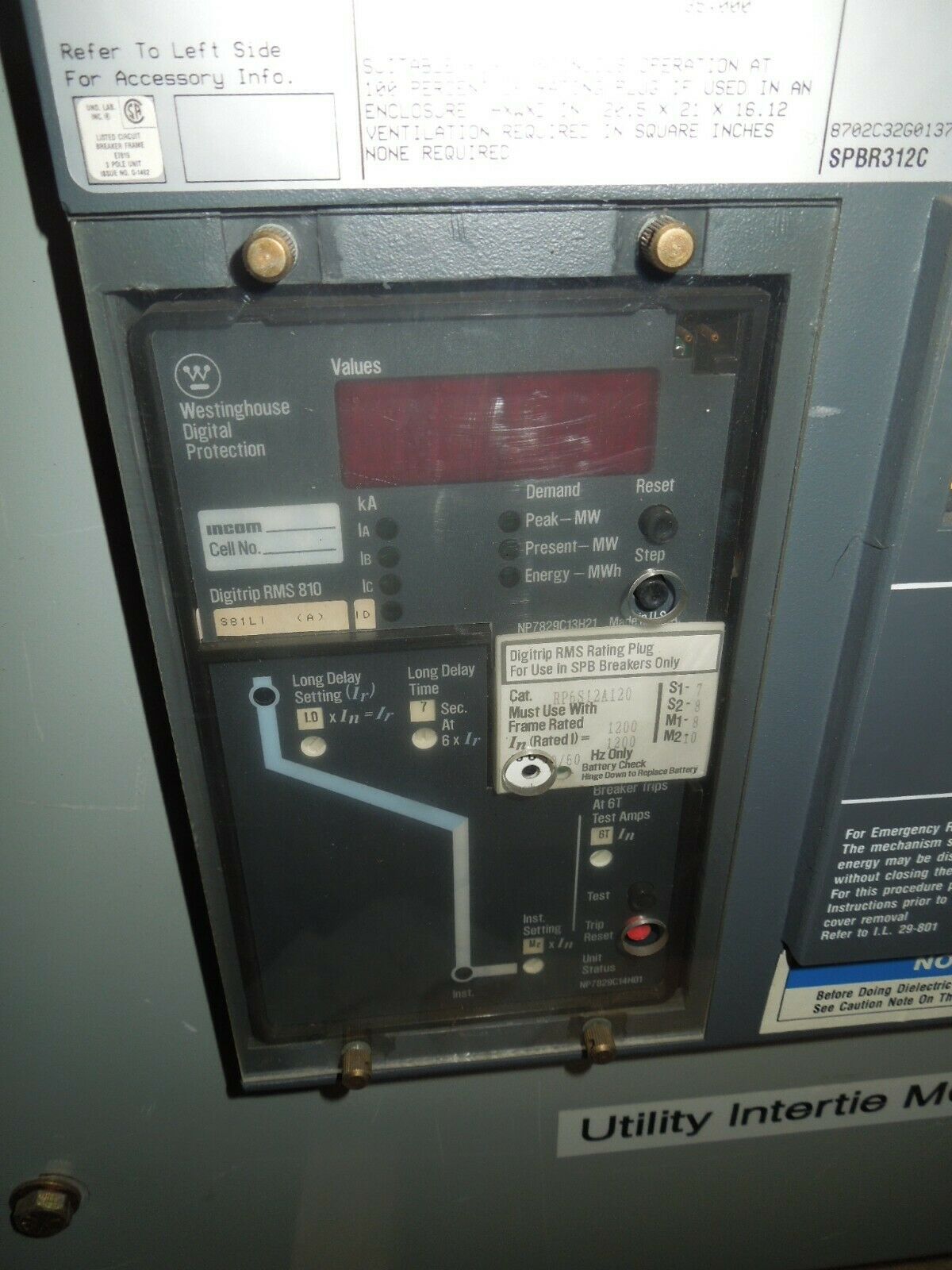 Cutler-Hammer Westinghouse SPB100 1200A Frame 1200A Rated RMS 800 LI 120V EO/DO