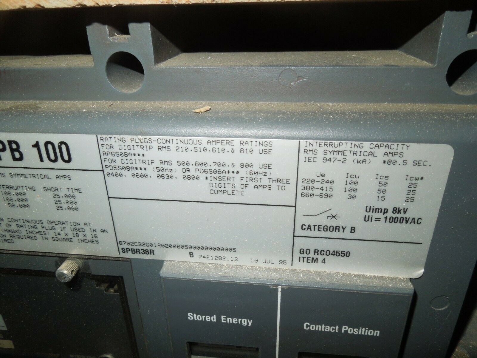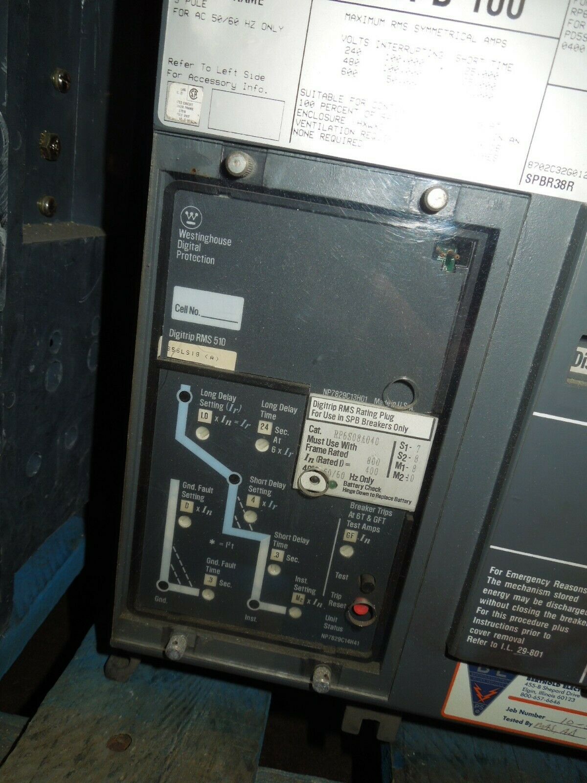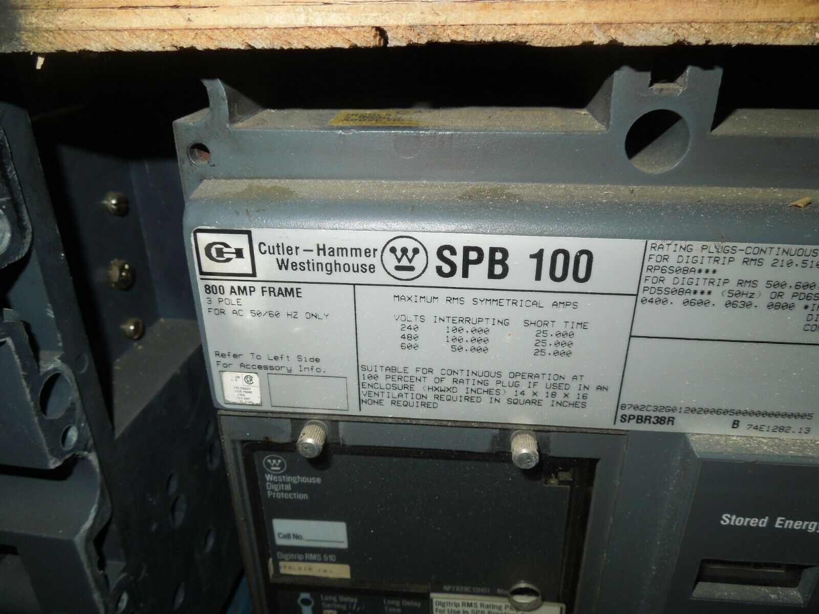 Cutler-Hammer Westinghouse SPB100 SPBR38R 800A Fr 400A Rated Breaker RMS510 LSIG