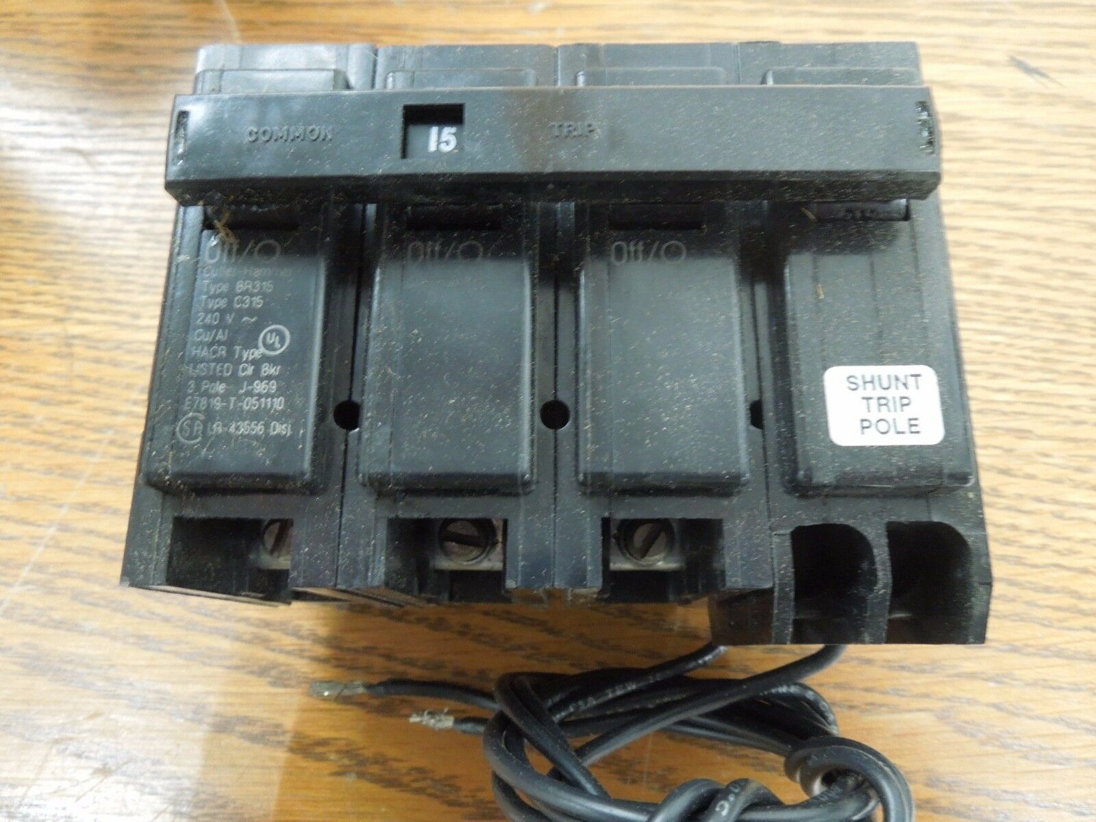 Eaton/Cutler Hammer BR315ST 15A 3p 240V Circuit Breaker w/ Shunt Trip New