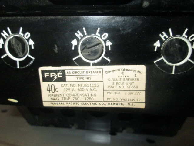 FPE NFJ631125 125A 3P 600VAC Circuit Breaker and 50 similar items