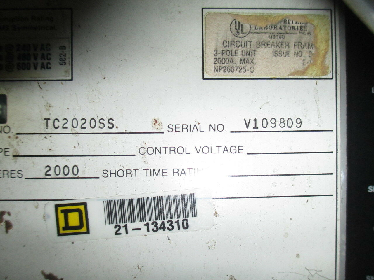 GE PowerBreak TC2020SS 2000A 3P 600V MO/DO Circuit Breaker w/ LSIG Used E-ok