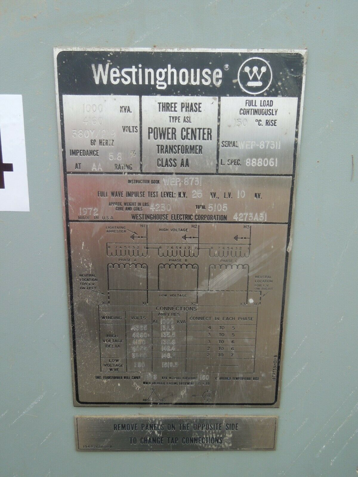 Westinghouse 1000KVA 4160-380Y/219V 3ph Dry and 50 similar items