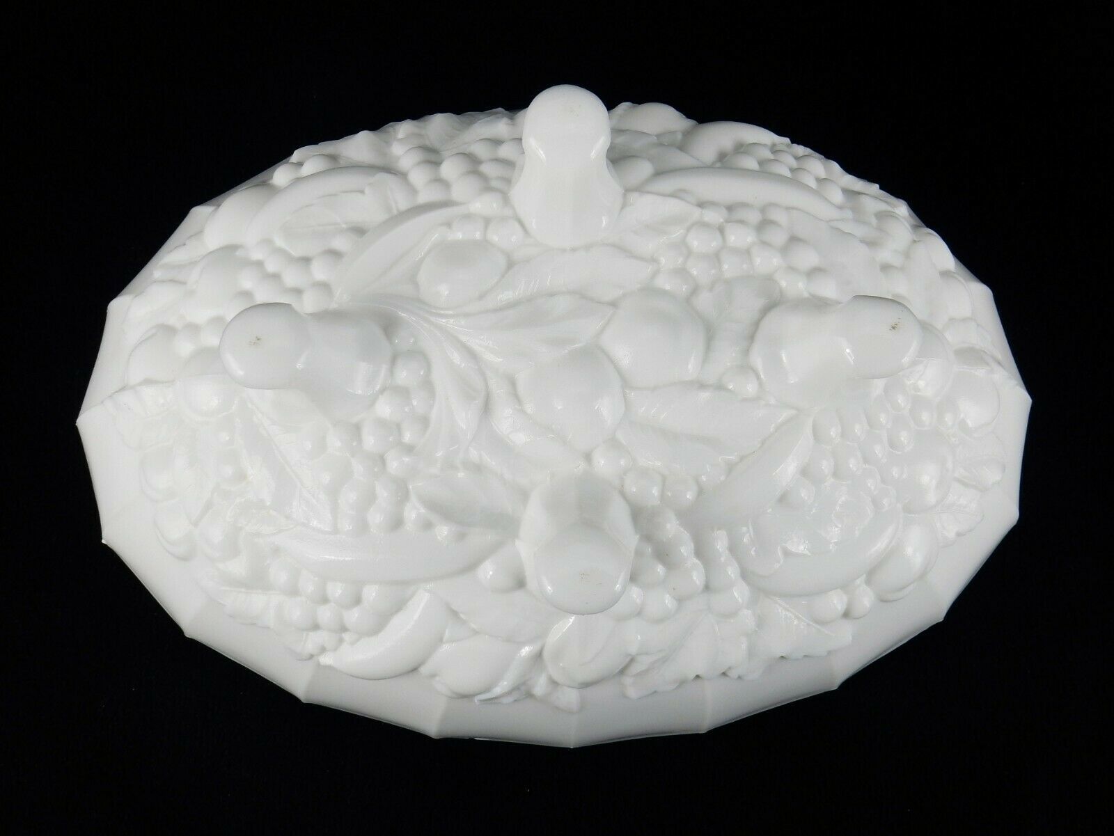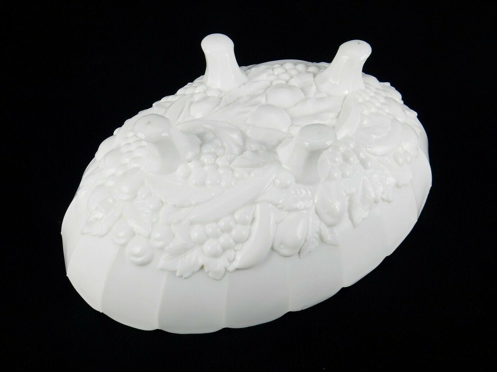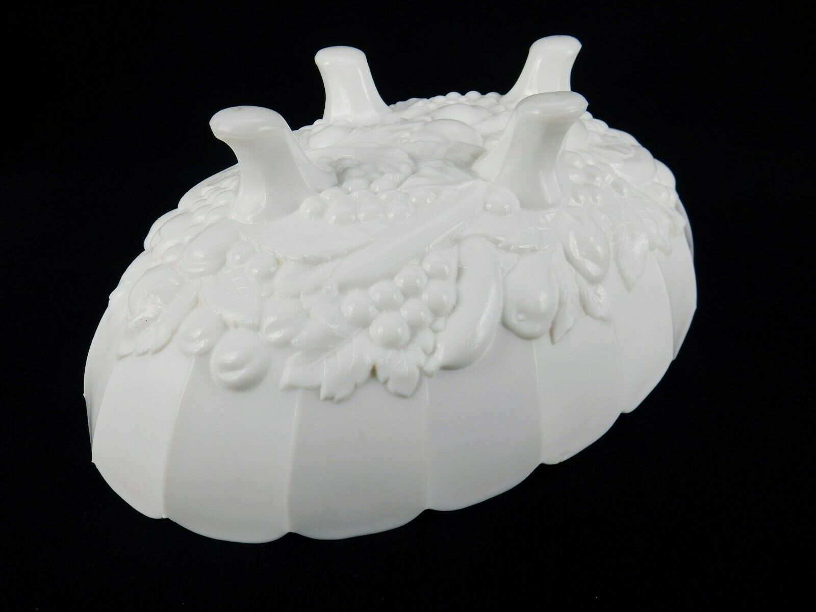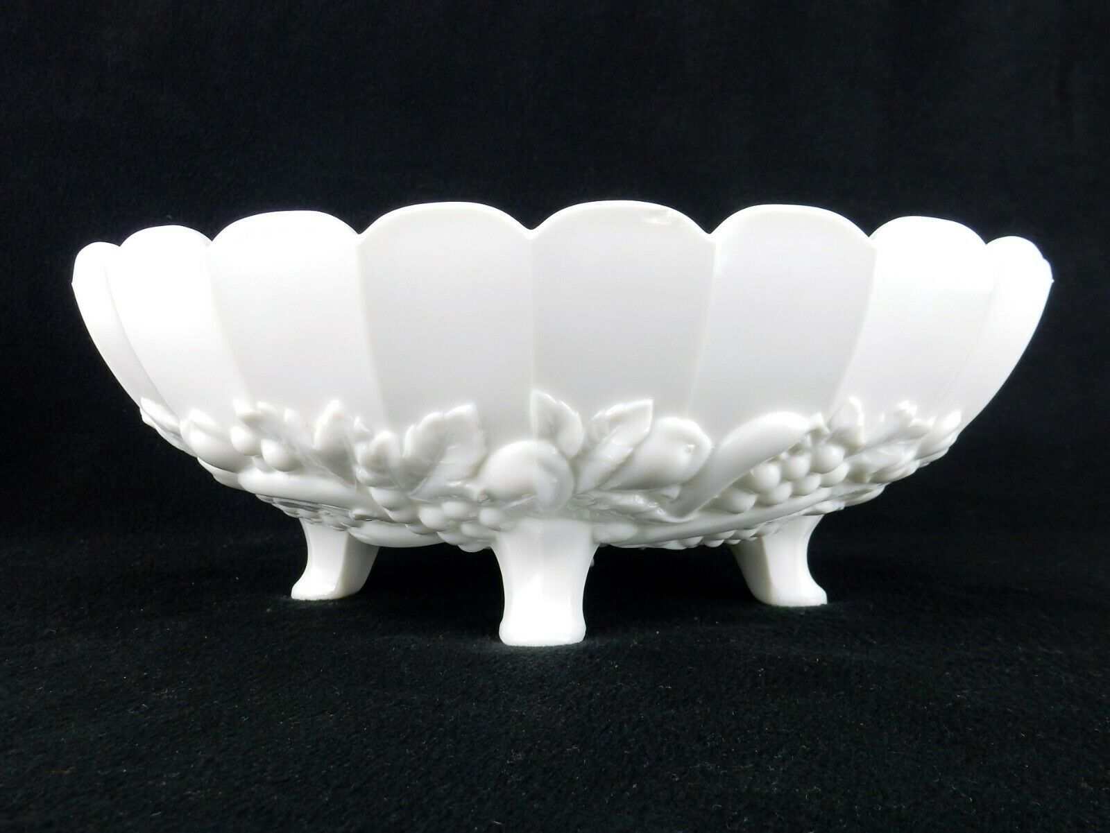 Indiana Glass Footed Centerpiece Bowl, Milk Glass,Verlys 3D, Fruit Garland Art