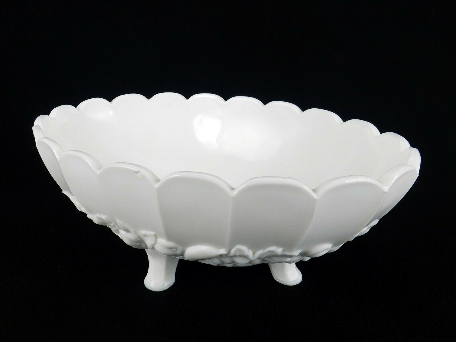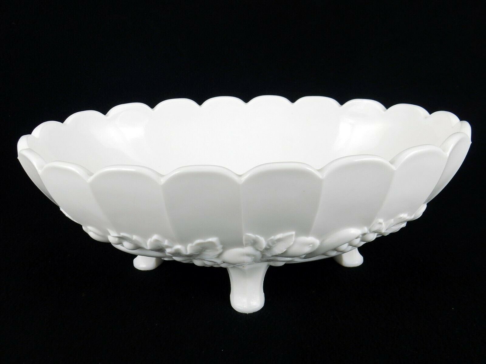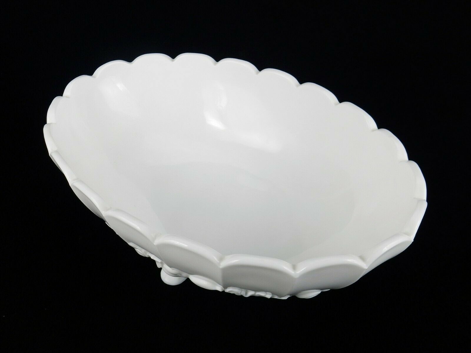 Gorgeous 4-footed oblong centerpiece milk glass fruit bowl