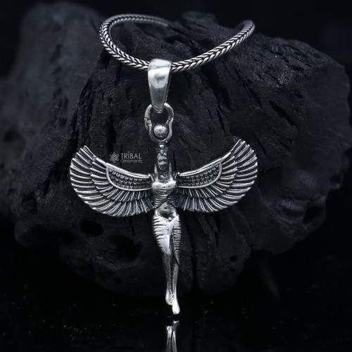 Eye of Horus Snake Egyptian Luck Charm Pendant Chain Necklace in .925 Sterling Silver