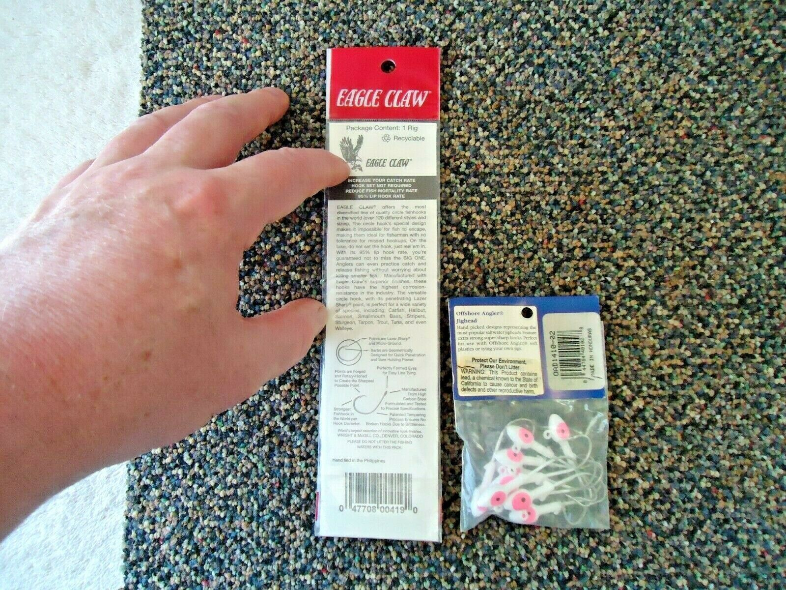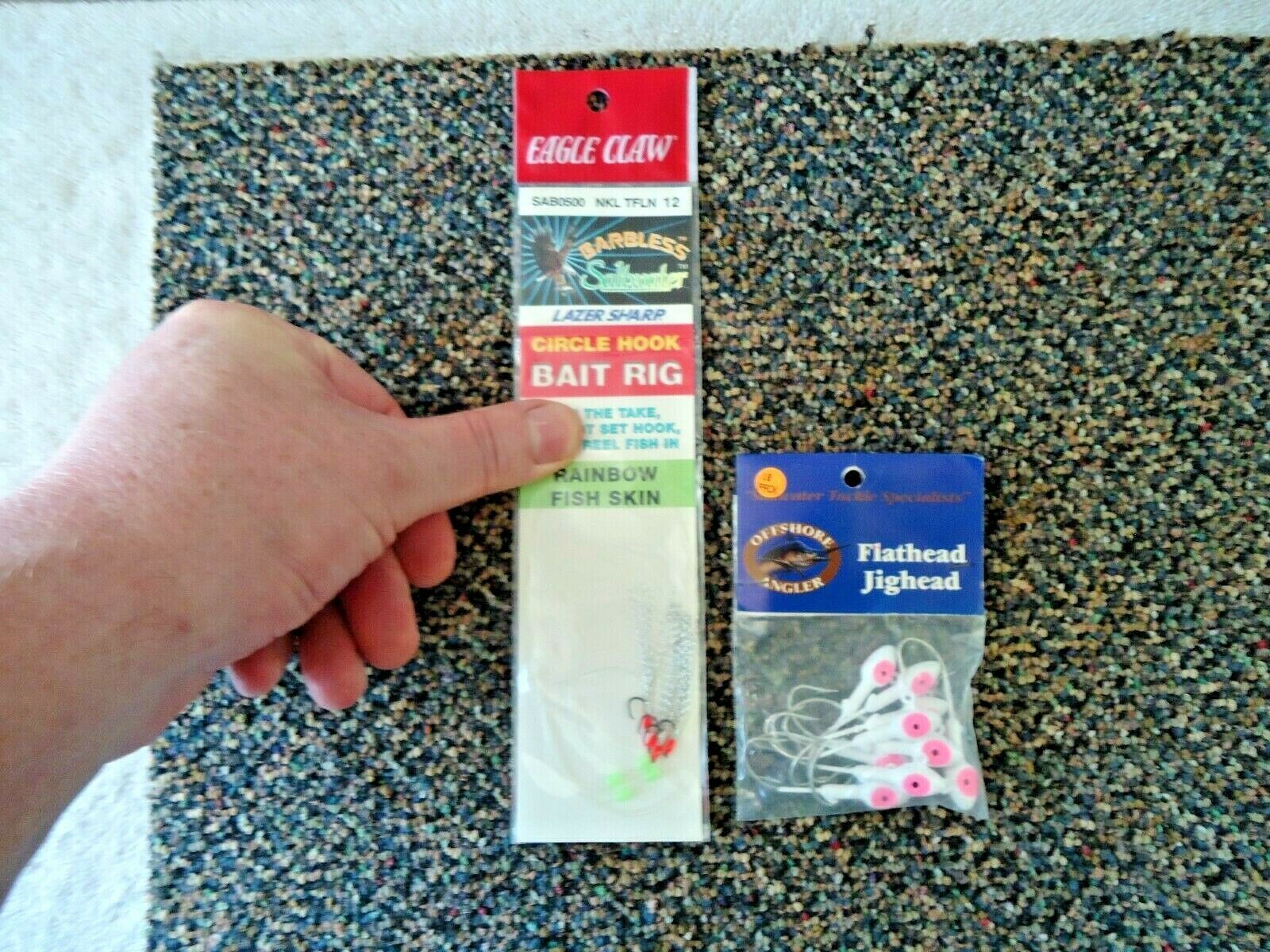Here is a Mixed Lot of 2 " NOS " Saltwater Fishing Items Pack Of Flathead Jigheads,Circle Hook Bait Rig " GREAT ITEMS ".This is a must for anyone who uses these.If you have any concerns or questions about this item(s) please ask before bidding / purchasing because this item(s) is being SOLD AS IS.Thank You.-(PC3)