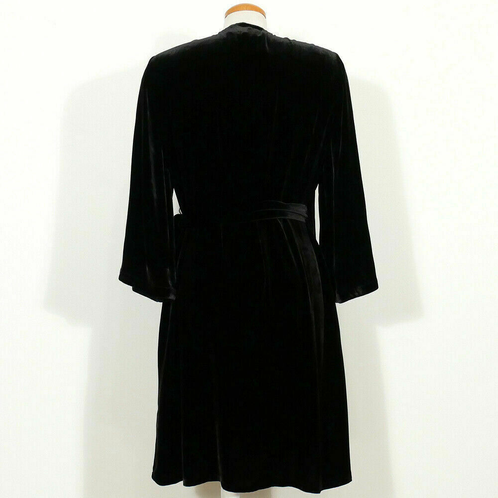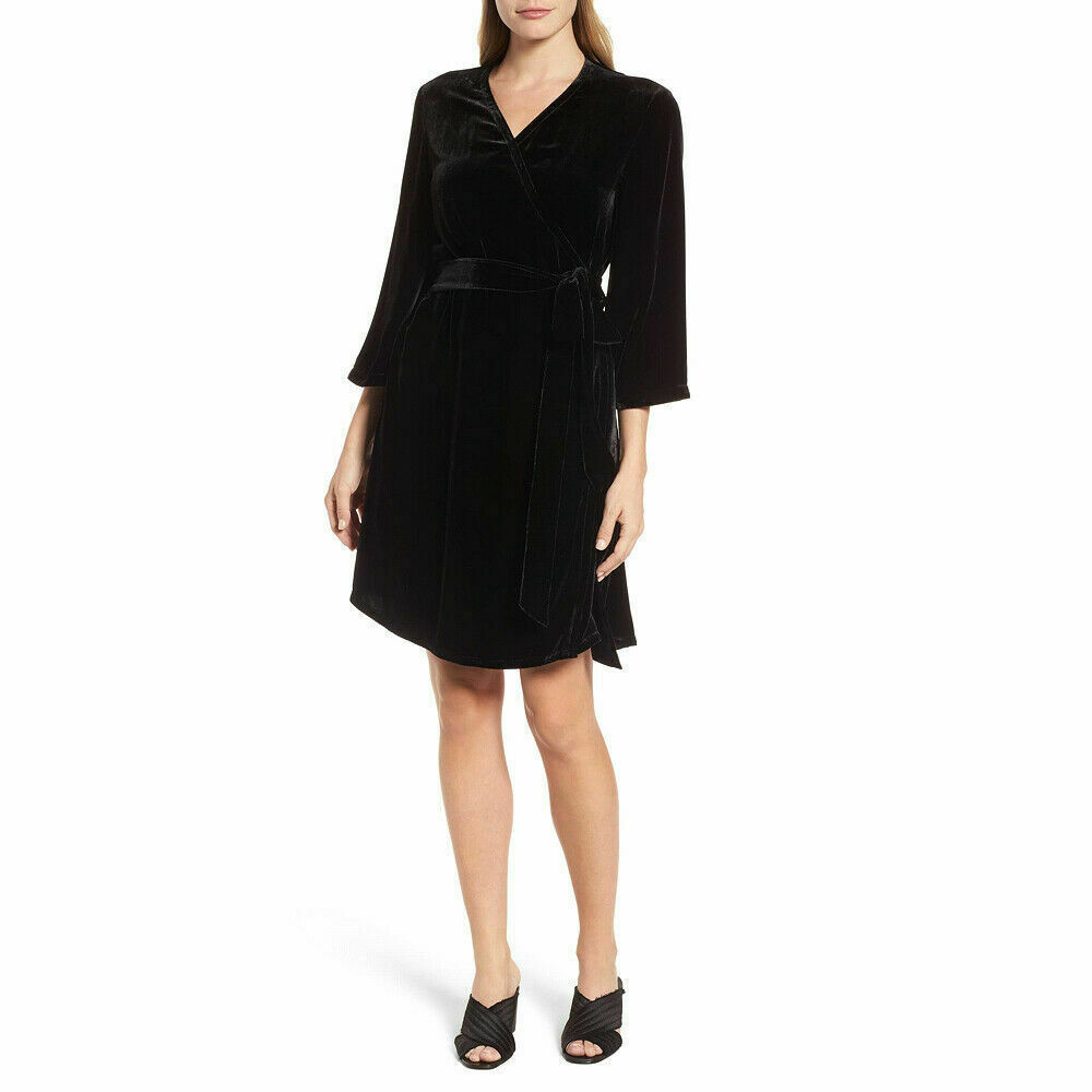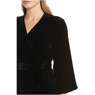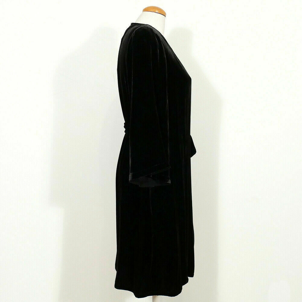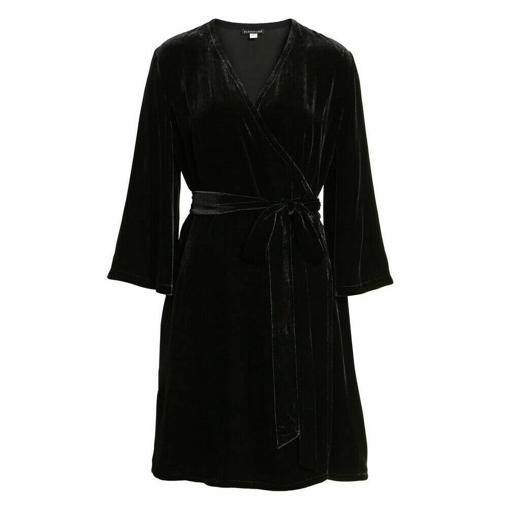 EILEEN FISHER Black Washable Velvet Surplice V-Neck Bell Sleeve Wrap Dress S