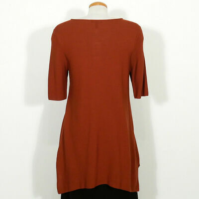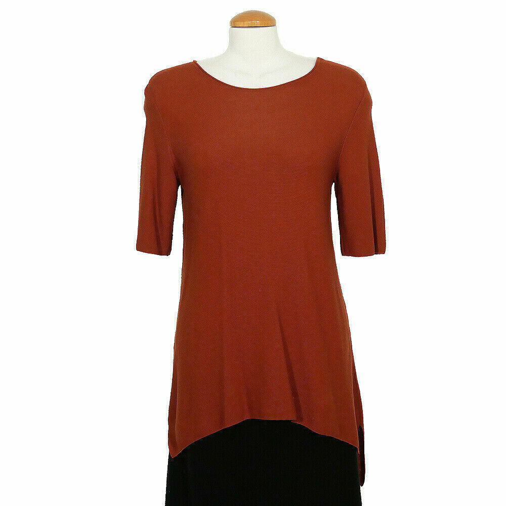 EILEEN FISHER Paprika Orange Sleek Tencel Links Knit High Low Sweater 2X