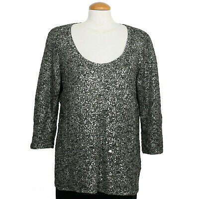 EILEEN FISHER Ash Gray Lightweight Linen Blend Shimmer Karma Sweater PP