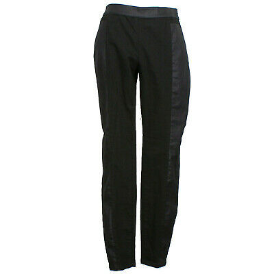 EILEEN FISHER Black Stretch Cotton Denim Waxed Panel Jean Leggings 8