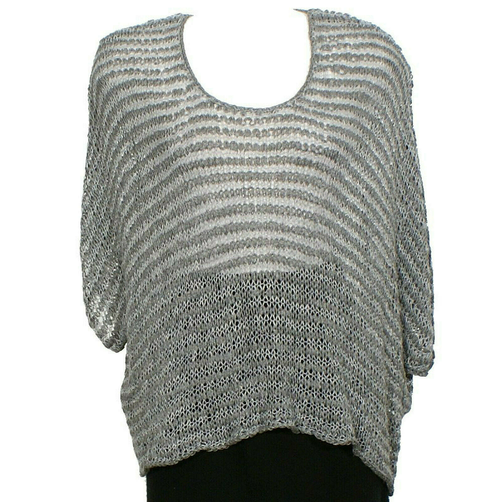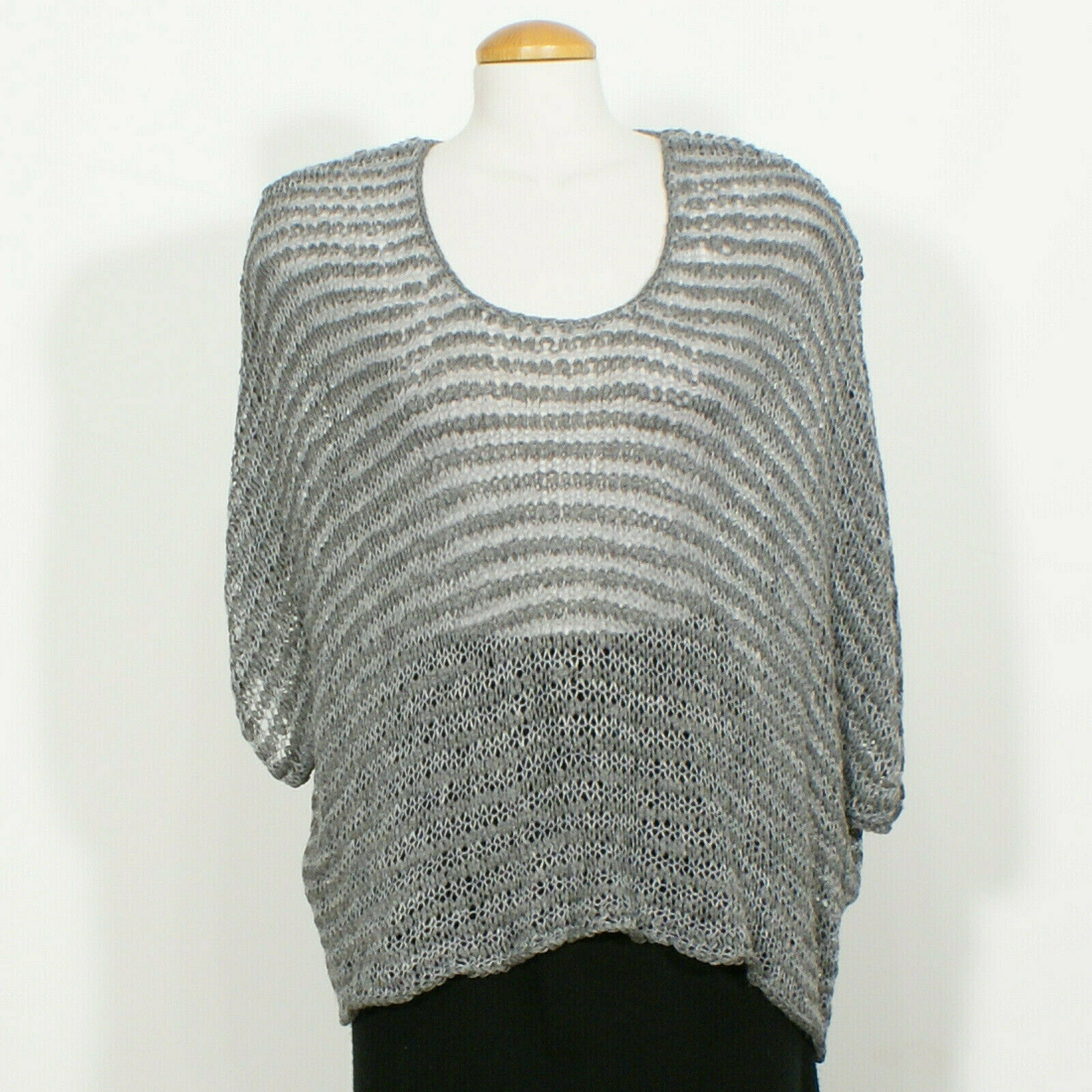 EILEEN FISHER Dark Pearl Gray Open Twist Stripe Viscose Linen Box Sweater Top XL