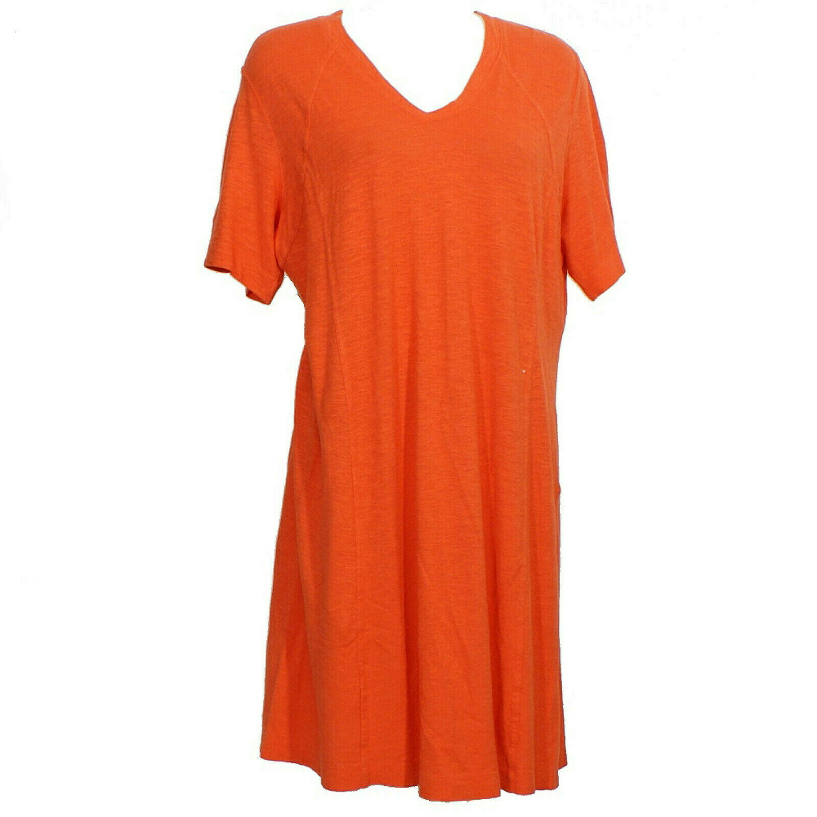 EILEEN FISHER Geranium Orange Organic Cotton Hemp Twist Knit V-Neck Dress XS