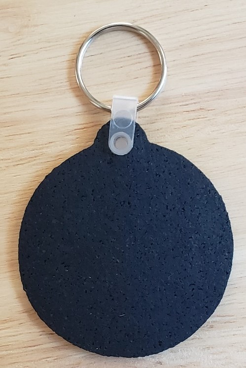 Neoprene keychain measures 2-1/4" in diameter.