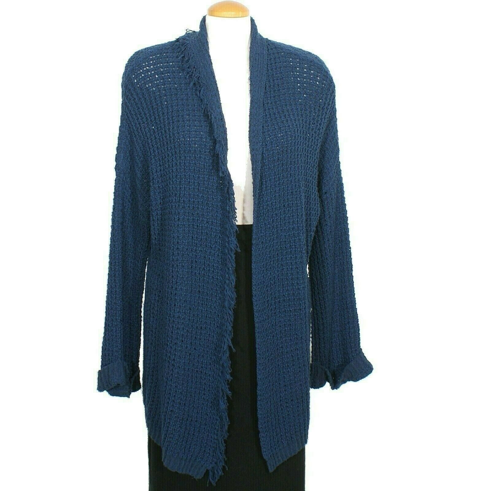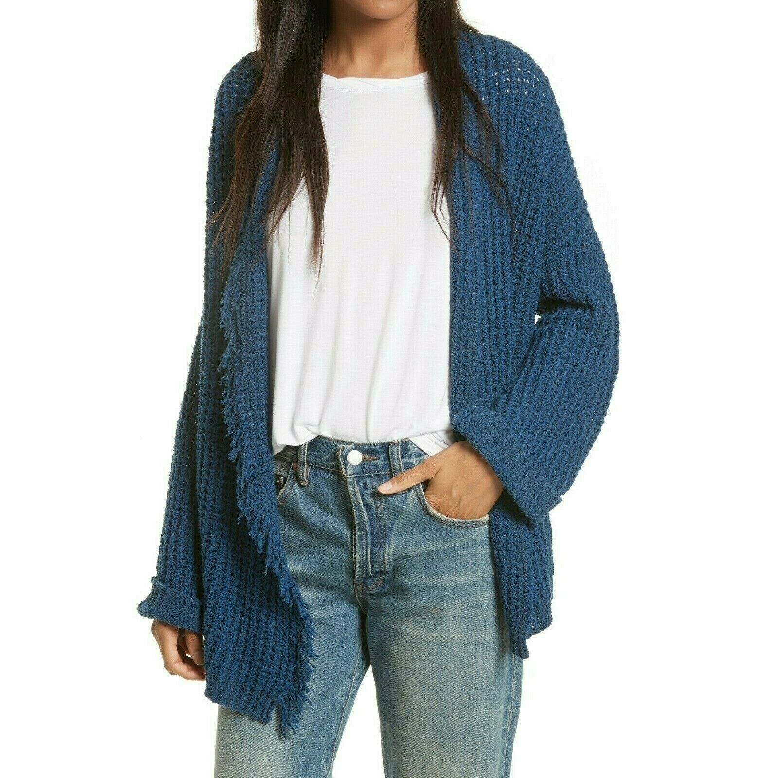 FREE PEOPLE Blue Ill Be Around Fringe Slouchy Silk Cotton Cardigan M