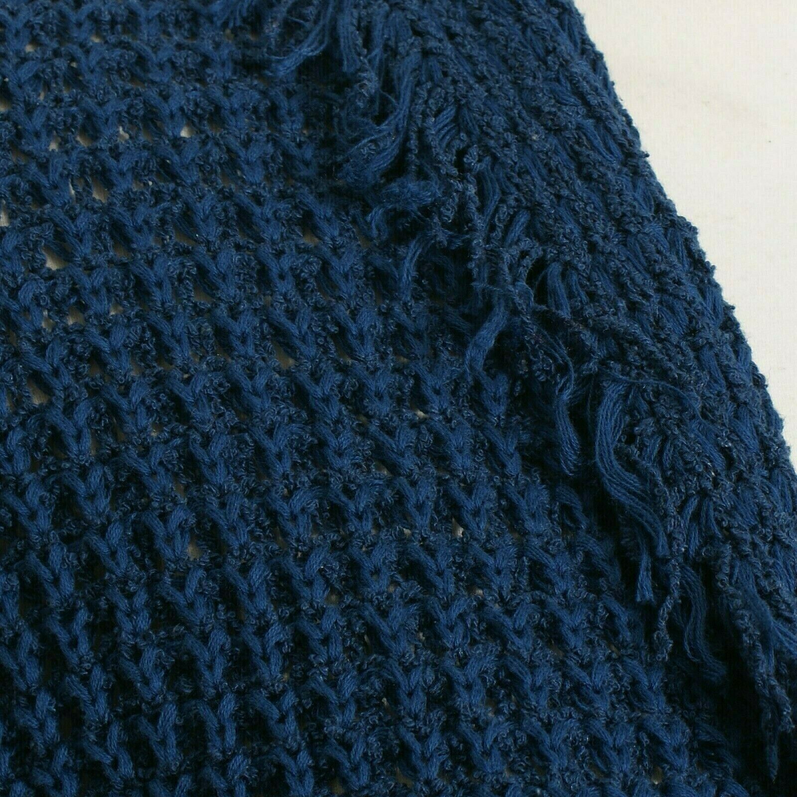 Blue Ill Be Around Fringe Slouchy Silk Cotton Cardigan M